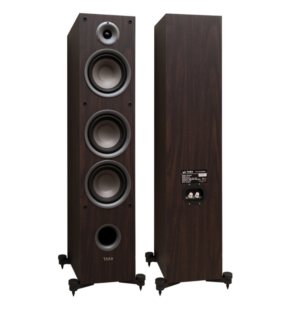 Taga Harmony TAV-607F to najnowszej generacji kolumny podłogowe oferujące wysoką jakość dźwięku w przystępnej cenie. Ich dźwięk cechuje się dobrze zdefiniowanym, głębokim basem, bogatym środkowym pasmem, detalicznymi i wyjątkowo czystymi wysokimi tonami oraz otwartą sceną dźwiękową. Kolumny TAV-607F swoje brzmienie zawdzięczają 25-milimetrowemu przetwornikowi wysokotonowemu z jedwabną kopułką, 165-milimetrowemu przetwornikowi średniotonowemu i aż dwóm 165-milimetrowym przetwornikom niskotonowym.