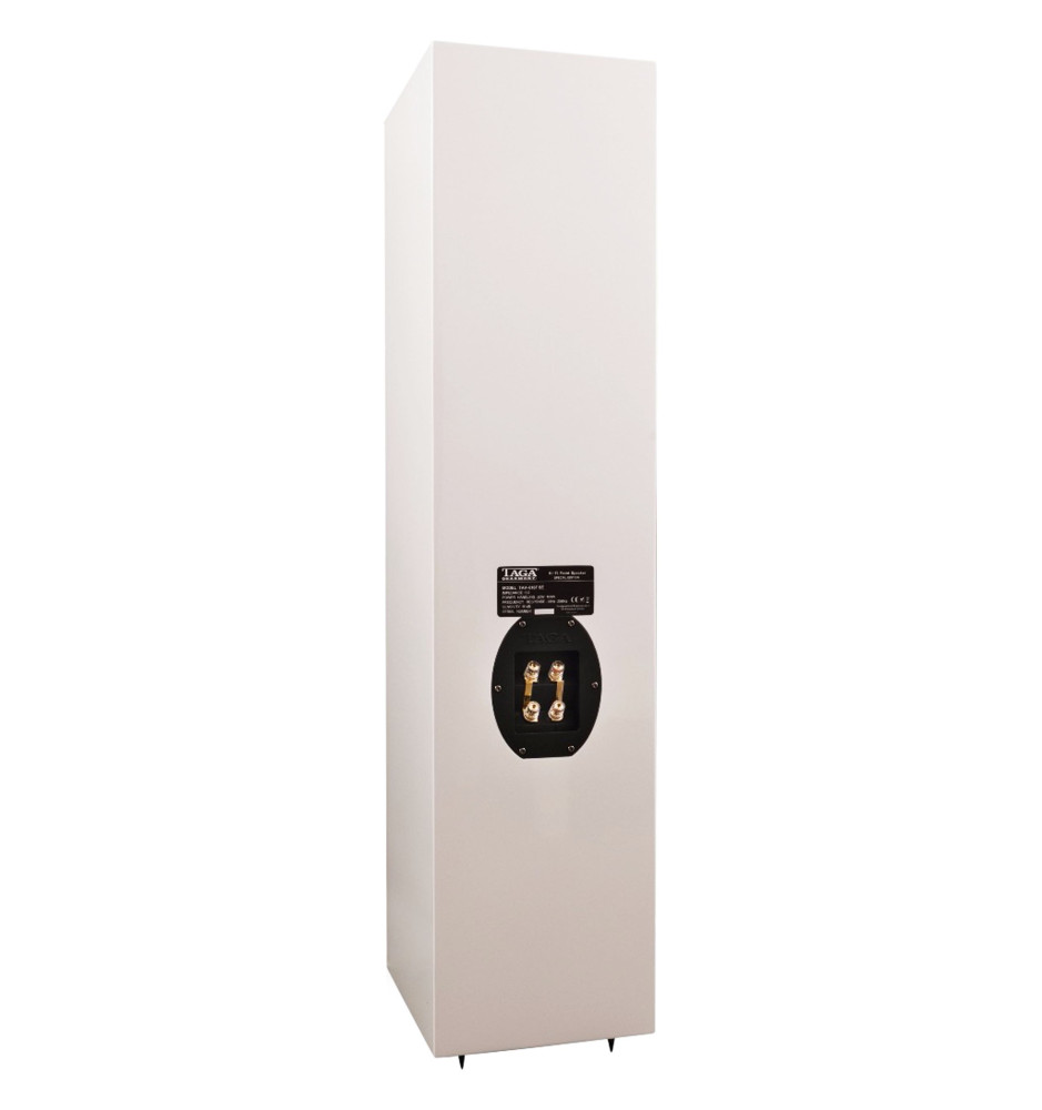 Stylowa obudowa kolumny została wykonana w unikalnej technologii Taga Low Interference Enclosure, dzięki czemu jest niezwykle sztywna i odporna na wibracje nie powodując zabarwienia dźwięku. Ścianki obudowy wykonano z MDF o grubości 15mm oraz 21mm na przednim panelu. Całość pokryto aż 7 warstwami białego lakieru o wysokim połysku.
