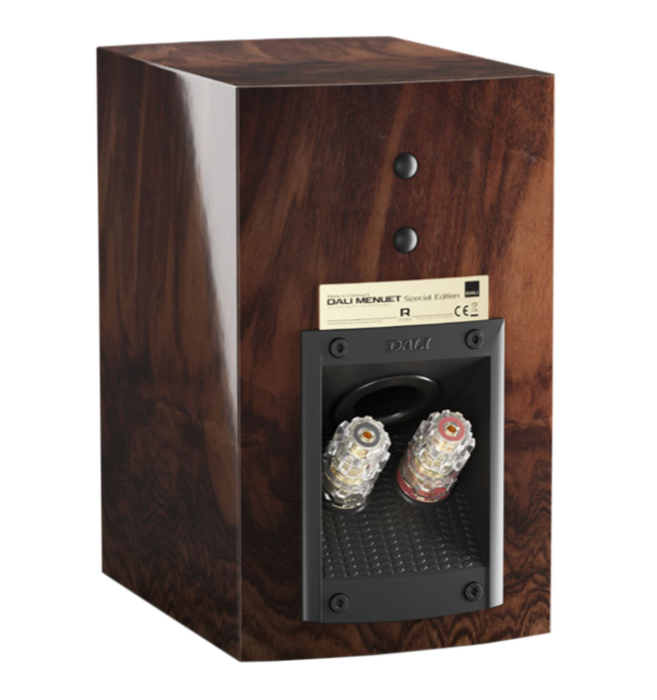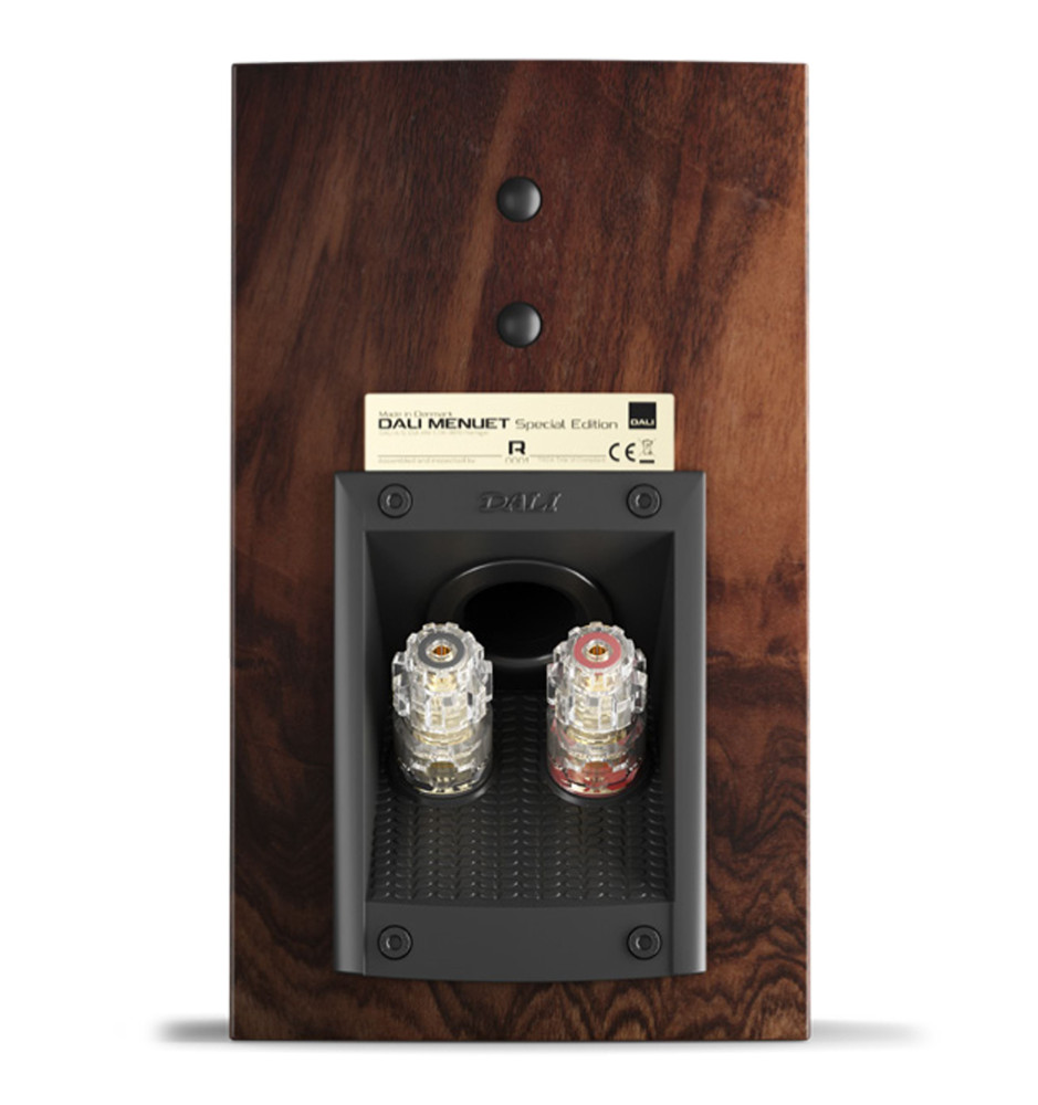 Dali Menuet SE, dzięki zintegrowanemu portowi basowemu z terminalem głośnikowym umieszczonym na tylnym panelu, oferuje elastyczne możliwości ustawienia, czy to na półce, szafce, stojaku lub zamocowania na ścianie.