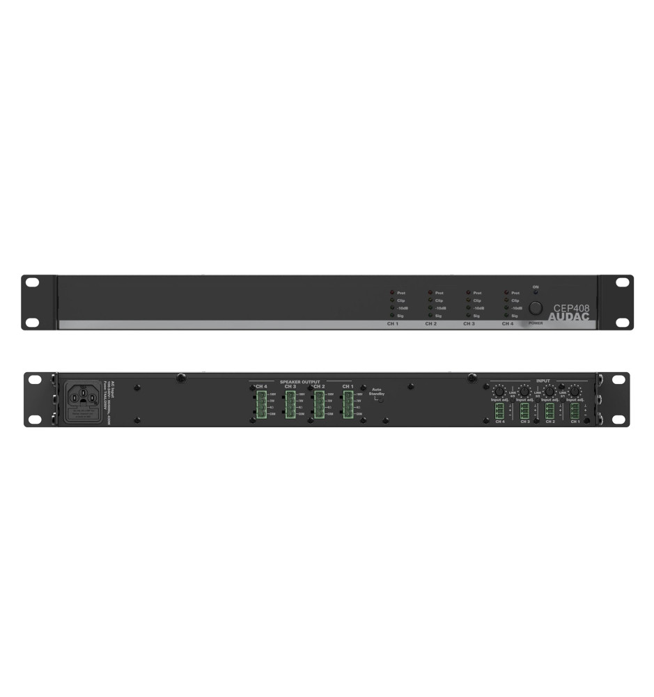 Audac CEP408 oddaje do dyspozycji użytkownika cztery kanały o mocy wyjściowej 80 W na kanał. Zapewniają one wysokiej jakości wzmocnienie rozproszone w wielu strefach o różnych zastosowaniach. Dzięki kompaktowej i lekkiej konstrukcji wynikającej z przemyślanego zaprojektowana charakteryzuje się on wysoką wydajnością i niezawodnością.