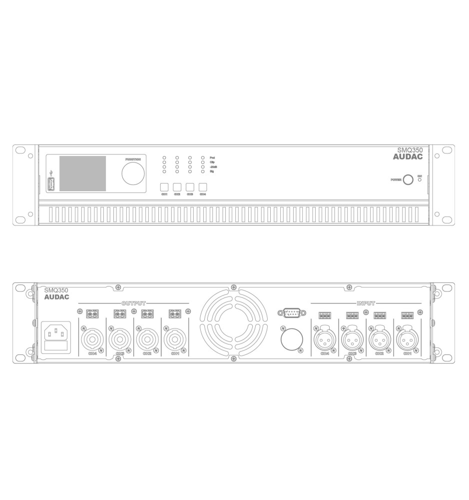 Audac SMQ350 - czterokanałowy wzmacniacz mocy