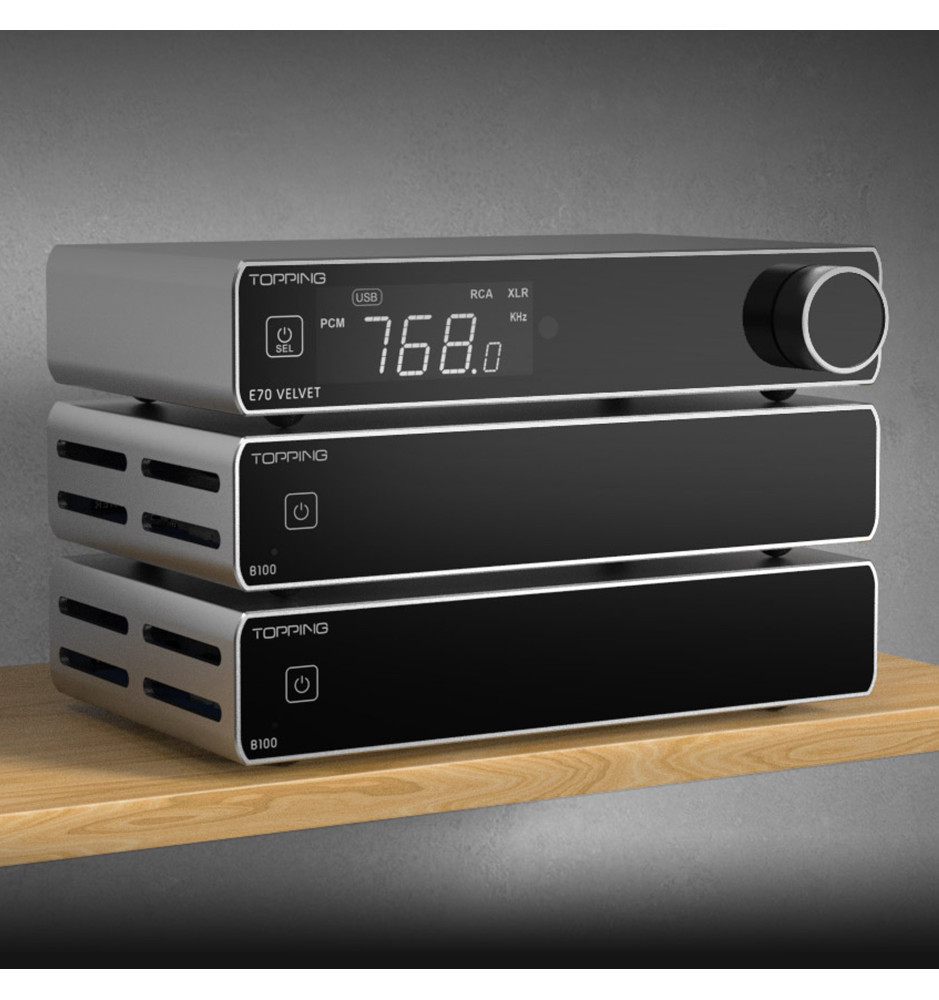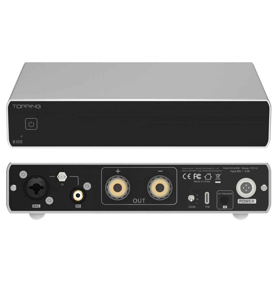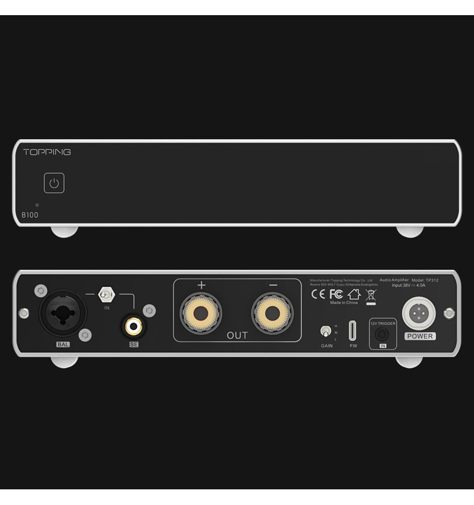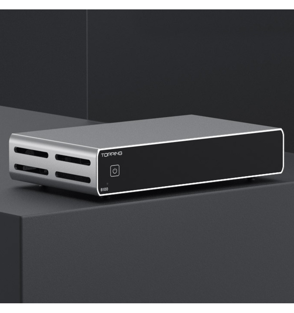 Końcówka mocy Topping B100 wykorzystuje nowoczesny moduł T'ang-ku-la, który dzięki trójstopniowej technologii sprzężenia zwrotnego redukuje szumy i zniekształcenia, zapewniając imponujący zakres dynamiki wynoszący 151 dB.