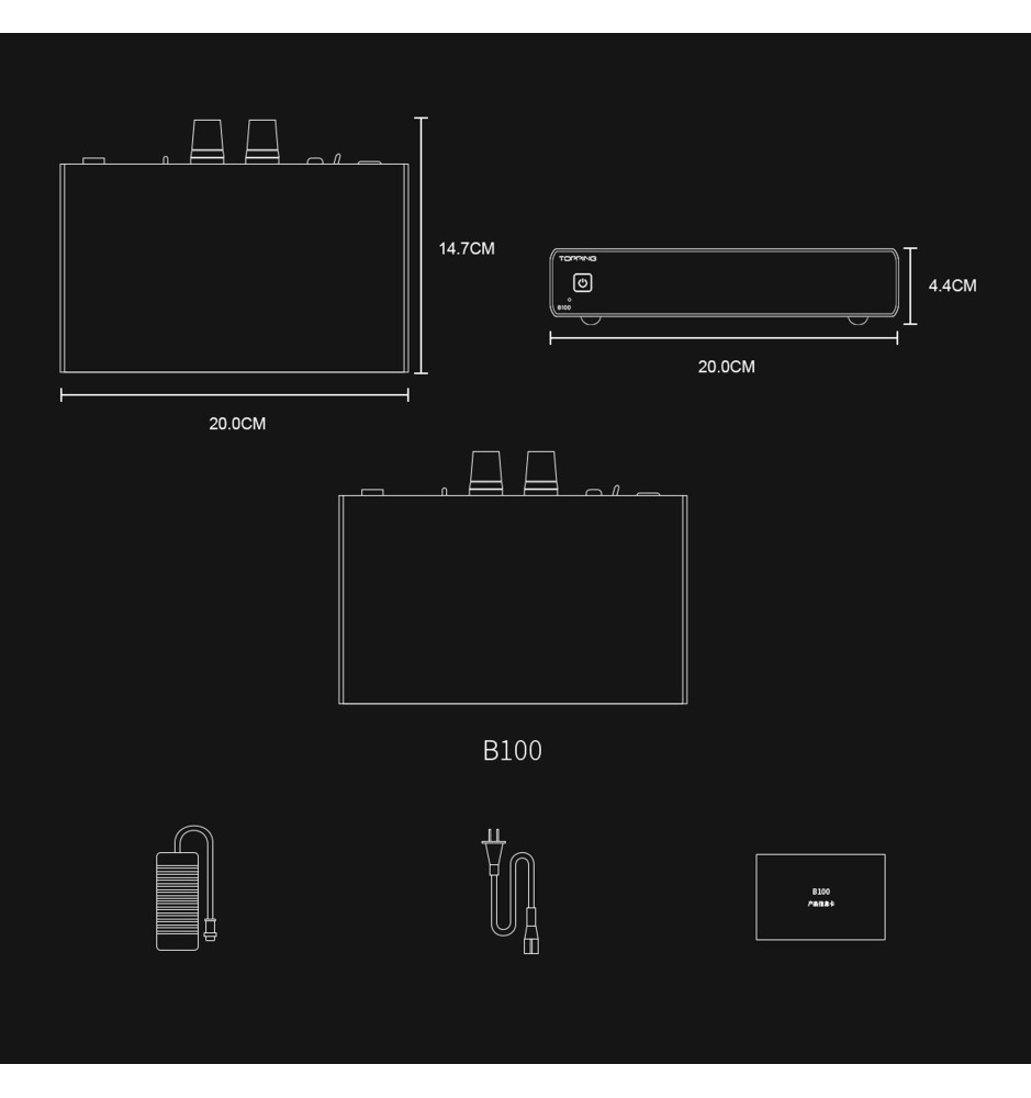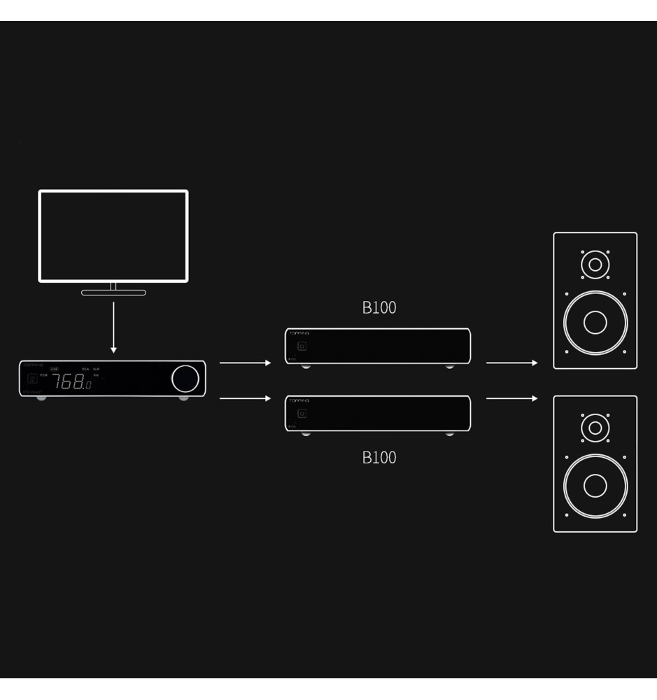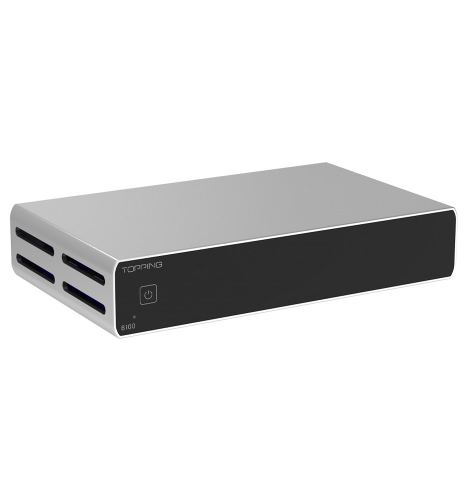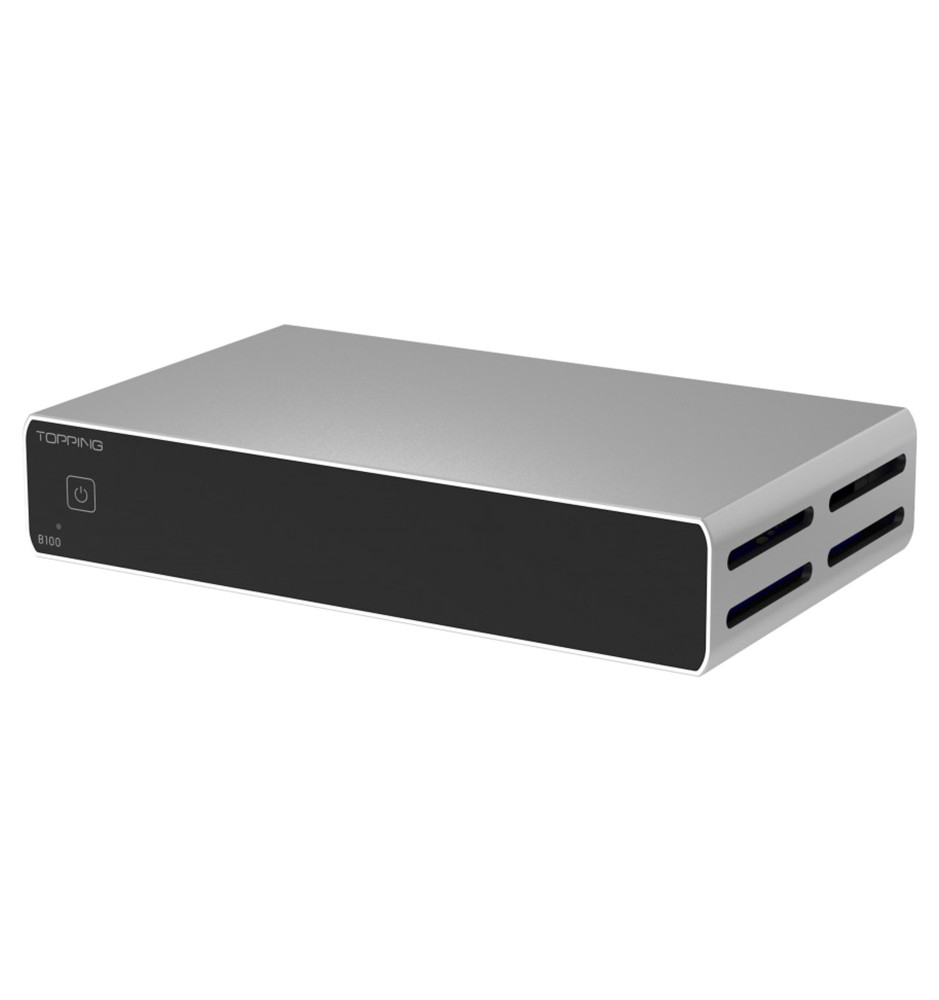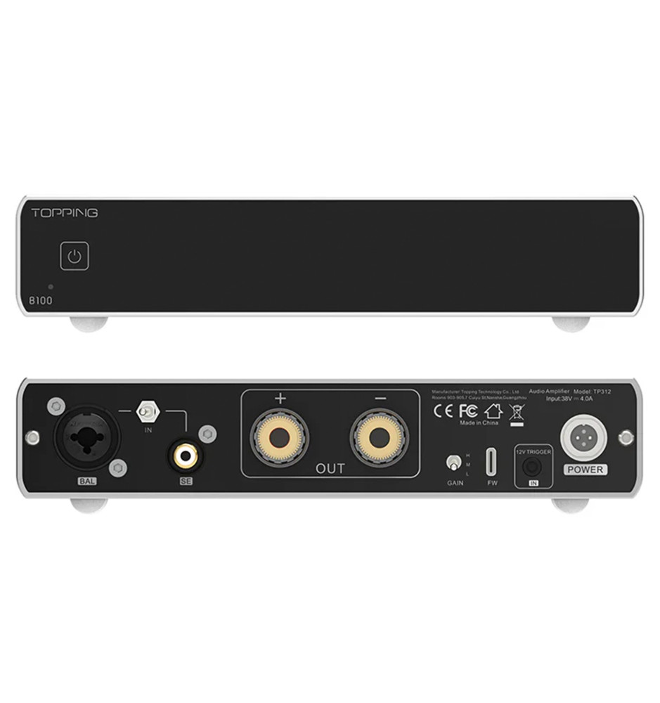 Końcówka mocy Topping B100 wykorzystuje nowoczesny moduł T'ang-ku-la, który dzięki trójstopniowej technologii sprzężenia zwrotnego redukuje szumy i zniekształcenia, zapewniając imponujący zakres dynamiki wynoszący 151 dB.