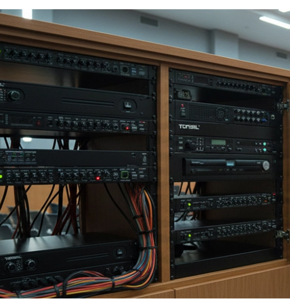 Urządzenie zostało zamknięte w wytrzymałej obudowie o wysokości 1.5U przystosowanej do montażu w szafie Rack, co ułatwia integrację z profesjonalnymi systemami nagłośnienia. Kompaktowa i solidna konstrukcja sprawia, że Tonsil PA-4100 doskonale sprawdzi się zarówno w instalacjach stałych, jak i mobilnych zestawach audio.