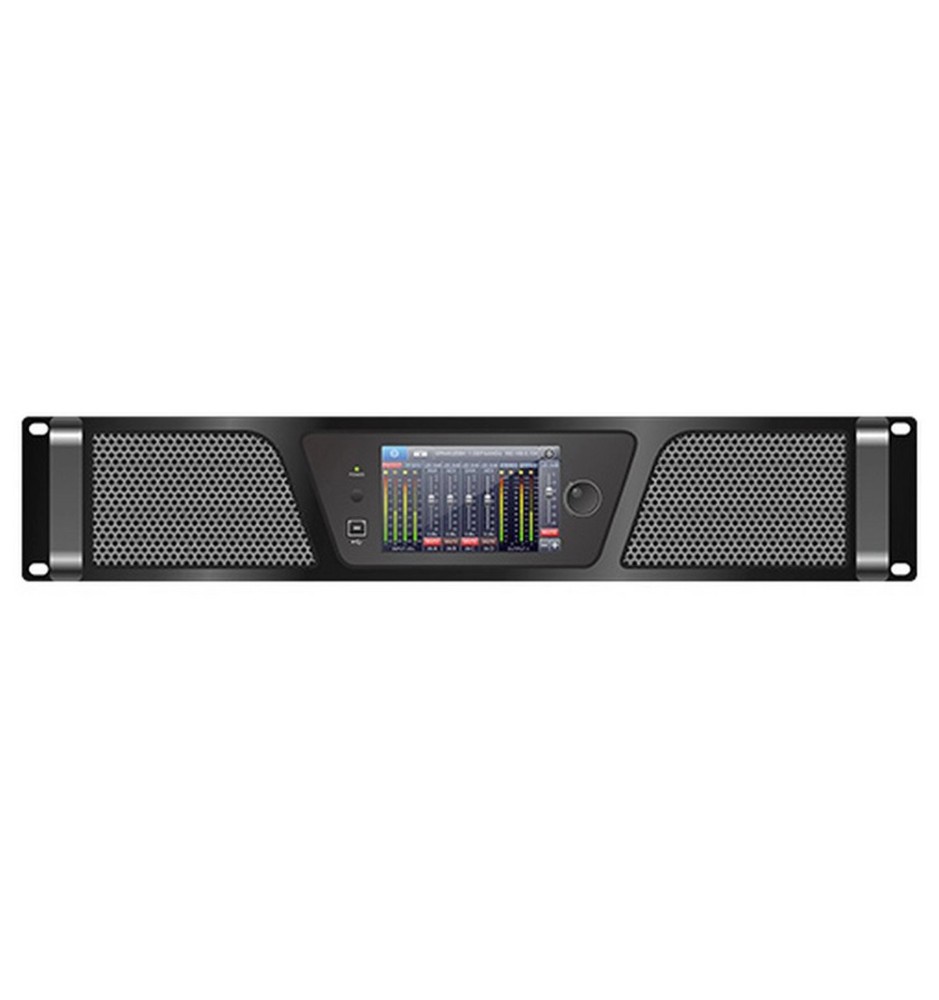 Intuicyjny kolorowy ekran dotykowy IPS 4,3″ umożliwia wygodną konfigurację i monitoring parametrów pracy urządzenia bez konieczności podłączania komputera. Dodatkowo wzmacniacz wspiera zdalne sterowanie przez sieć LAN (TCP/IP, RS232, RS485, USB), co usprawnia jego integrację w rozbudowanych systemach sterowania. Obudowa o standardzie 2U rack ułatwia montaż w profesjonalnych szafach teleinformatycznych, a szerokie napięcie zasilania (180–264 V AC) gwarantuje odporność na wahania sieci.