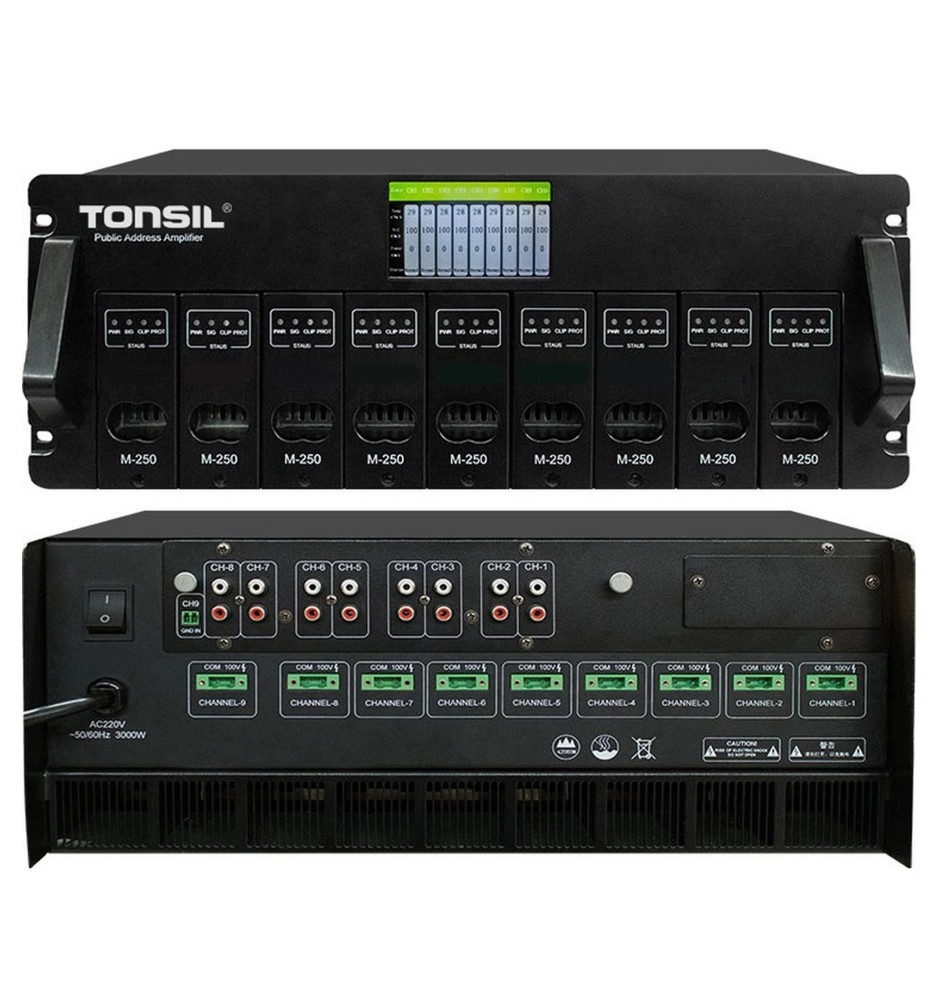 Tonsil WM-1012 to nowoczesny, 8-kanałowy wzmacniacz cyfrowy, zaprojektowany z myślą o profesjonalnych instalacjach nagłośnieniowych. Urządzenie oferuje 8 kanałów o mocy 250 W każdy plus 1 kanał zapasowy, co czyni je idealnym rozwiązaniem do systemów radiowęzłowych, nagłośnienia obiektów komercyjnych, biur, szkół czy przestrzeni publicznych. Dzięki obsłudze linii 100V, funkcji zapasowego kanału standby oraz niezależnemu sterowaniu kanałami, WM-1012 zapewnia maksymalną elastyczność i efektywność pracy.