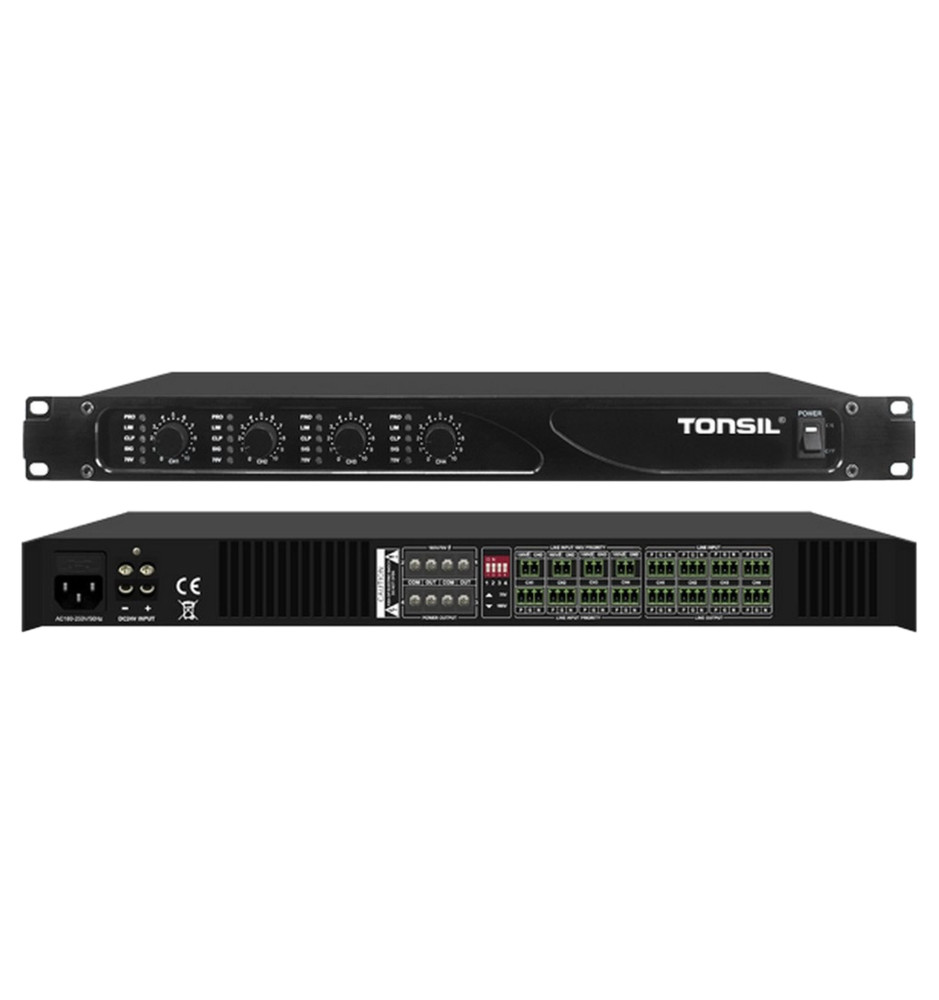 Tonsil WM-5250 oferuje cztery niezależne kanały o mocy 250 W każdy, zapewniając łącznie 1000 W mocy RMS. Dzięki temu wzmacniacz bez problemu obsługuje rozbudowane instalacje nagłośnieniowe w obiektach publicznych i komercyjnych. Wysoka moc wyjściowa gwarantuje stabilną pracę nawet przy dużej liczbie głośników w systemie, zachowując jednocześnie odpowiednią dynamikę i czytelność dźwięku.