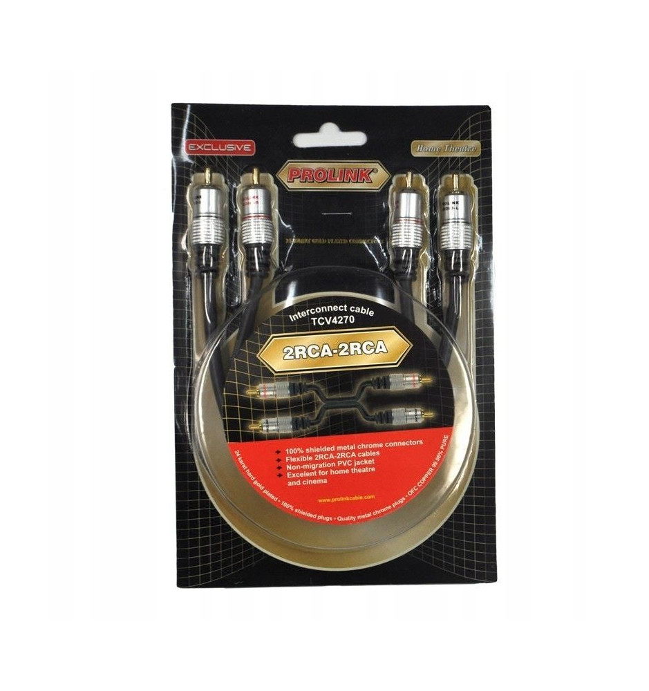 Prolink Exclusive TCV 4270 to wysokiej jakości kabel audio, idealny do podłączenia domowych zestawów audio. Stworzony dla bardziej wymagających użytkowników poszukujących wysokiej jakości przy umiarkowanej cenie. Najczęściej stosowany do przesyłania analogowego sygnału audio pomiędzy odtwarzaczem i wzmacniaczem.