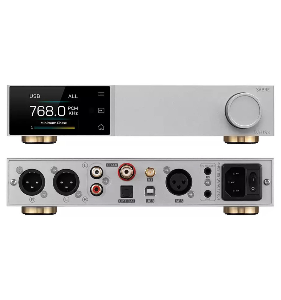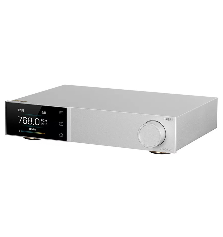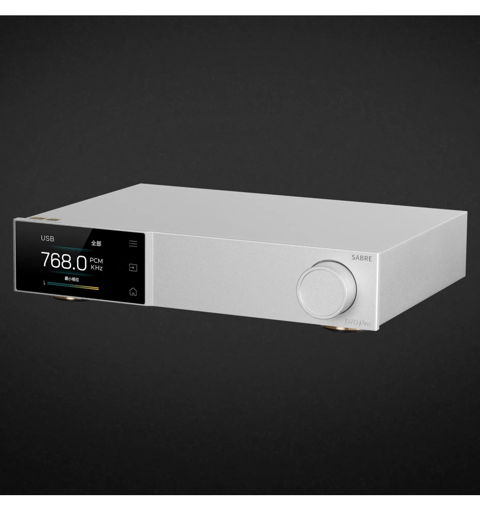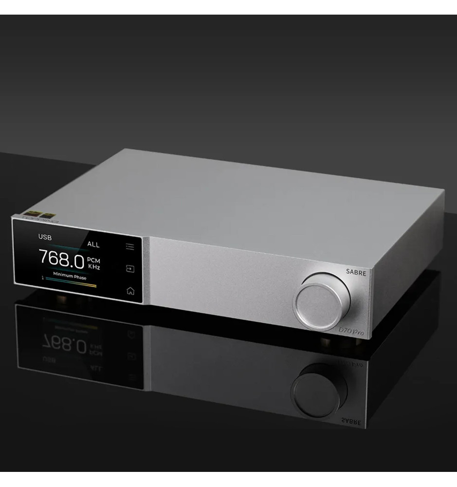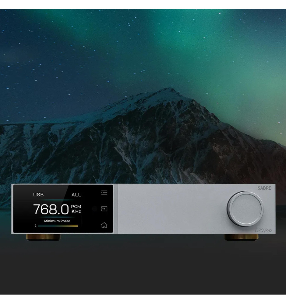 Dzięki zastosowaniu 32-bitowego układu ESS ES9039MPRO, D70 Pro SABRE zapewnia wyjątkową czystość sygnału oraz bardzo niski poziom szumów. Technologia ta pozwala na uzyskanie naturalnego i wyraźnego dźwięku, bogatego w najdrobniejsze szczegóły. Urządzenie obsługuje formaty PCM do 32-bit/768kHz oraz DSD512, gwarantując pełne spektrum dynamiki i detali, niezależnie od źródła dźwięku.