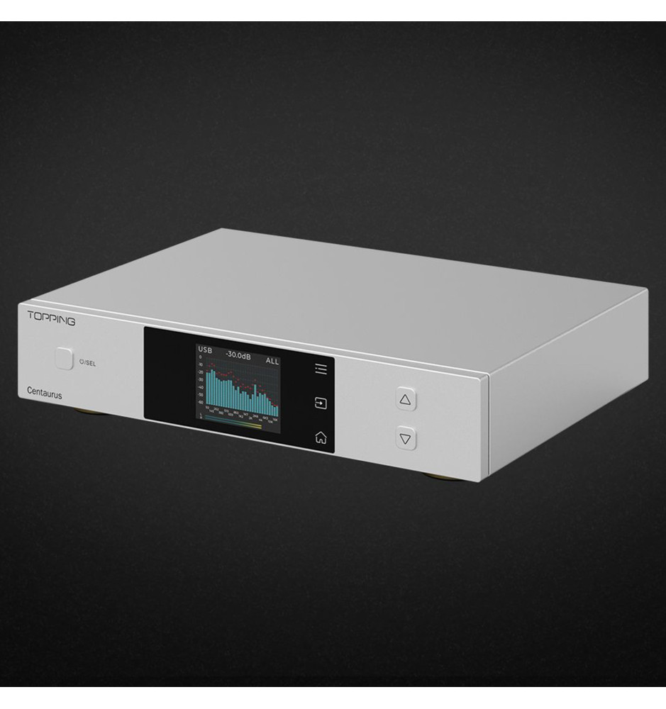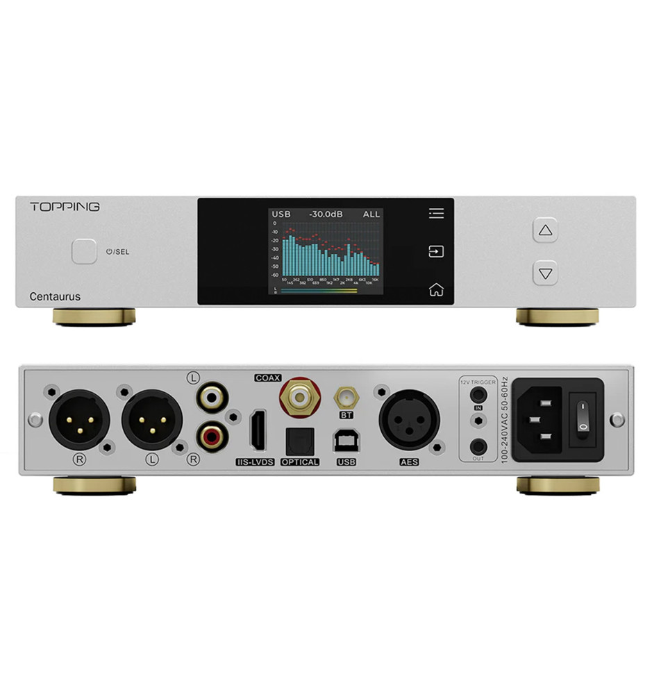 Urządzenie posiada wejścia: USB, optyczne, koaksjalne, AES/EBU oraz I2S (HDMI), a także wyjścia RCA i XLR. Topping Centaurus może również pełnić rolę przedwzmacniacza stereo z regulacją głośności.