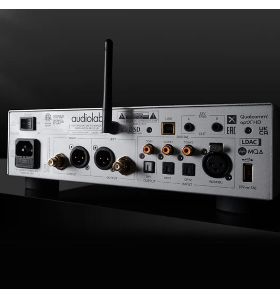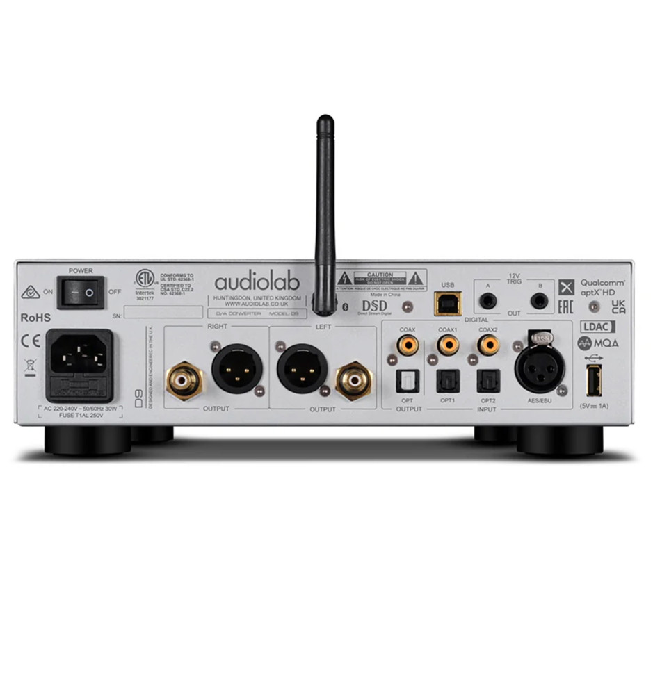 Audiolab D9 został wyposażony w referencyjny układ ESS Sabre ES9038PRO z technologią HyperStream II, oferujący wysoką rozdzielczość, szerokie pasmo oraz niski poziom szumów i zniekształceń. Obsługa formatów PCM do 768 kHz, DSD512 oraz pełne dekodowanie MQA oznacza autentyczne, naturalne brzmienie zgodne z zamysłem artysty i inżyniera dźwięku.
