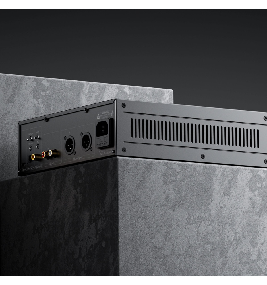 Wnętrze urządzenia zasila 46 W toroidalny, nisko-szumowy zasilacz liniowy, który zapewnia czyste napięcie, minimalizując zakłócenia i szumy tła. Obudowa cechuje się przemyślanym, minimalistycznym wzornictwem z klasycznym akcentem, a otwory wentylacyjne dbają o skuteczne odprowadzanie ciepła, co sprzyja stabilnej pracy przez wiele lat.