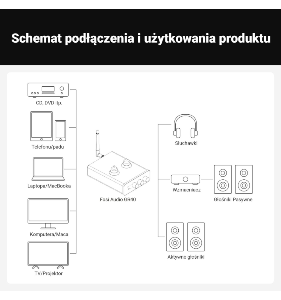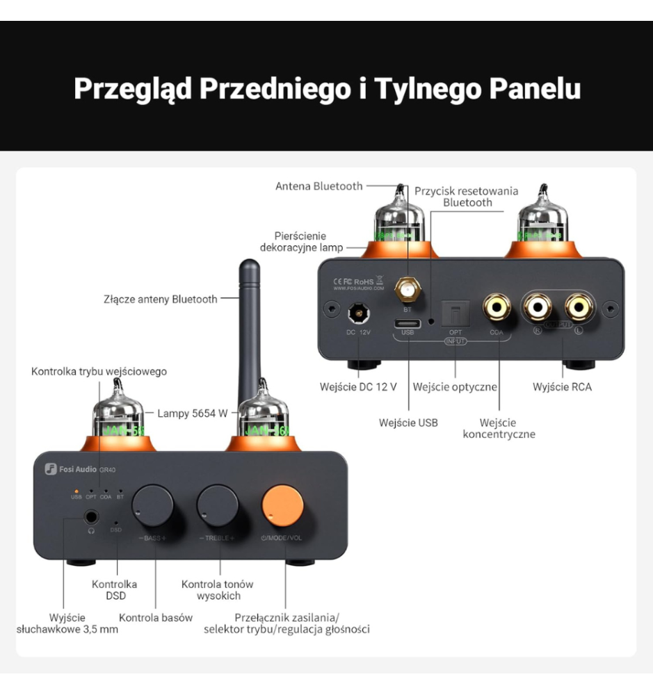 Jeśli zależy Ci na połączeniu lampowego charakteru, nowoczesnych technologii i topowej jakości dźwięku, Fosi Audio GR40 będzie idealnym wyborem. To urządzenie, które odmieni Twoje domowe audio, dostarczając brzmienia pełnego detali, dynamiki i naturalnego ciepła.
