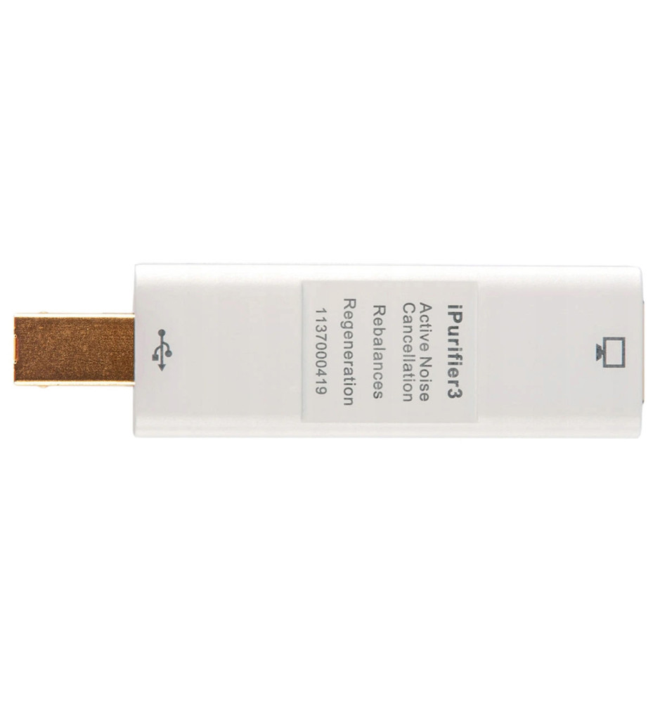 iFi Audio iPurifier3 to reduktor szumów z USB typu B. Pozwala na zniwelowanie niepożądanych szumów z komputera (np. szum zasilania, drgania) i tym samym na poprawę jakości dźwięku podczas odtwarzania przez USB.