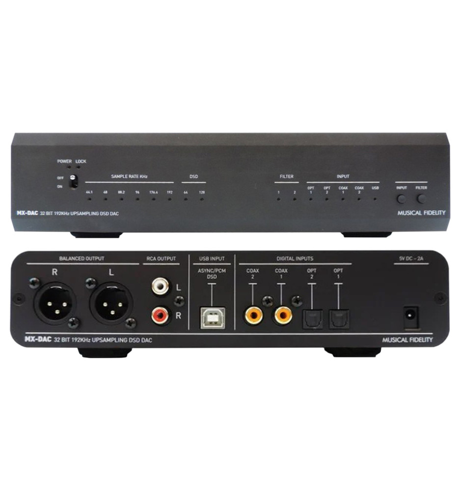 Musical Fidelity MX-DAC charakteryzuje się niezwykle niskimi zniekształceniami i szumami oraz bardzo szerokim pasmem przenoszenia. Zapewnia całkowicie neutralną i dokładną konwersję cyfrowo-analogową z dowolnego wejścia cyfrowego. Dodatkowo oferuje dwa typy wyjść analogowych: zbalansowane XLR oraz niezbalansowane RCA.