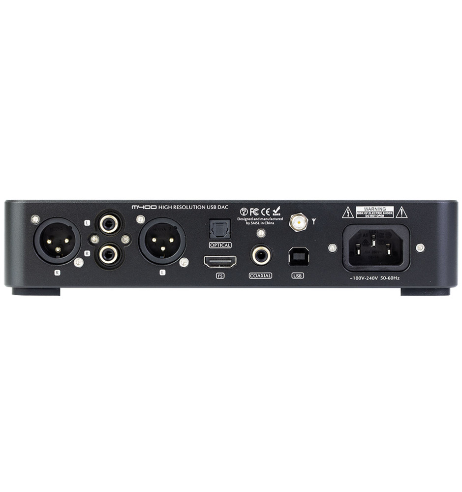 Wejścia USB, optyczne, koncentryczne I2S i Bluetooth 5.0 z obsługą kodeków UAT, LDAC oraz aptX HD umożliwiają podłączenie do M400 praktycznie każdego cyfrowego źródła dźwięku. Urządzenie wyposażono w zbalansowane wyjścia XLR i niezbalansowane RCA. Posiada również tryb przedwzmacniacza, cyfrowe filtry audio oraz pełne dekodowanie MQA.