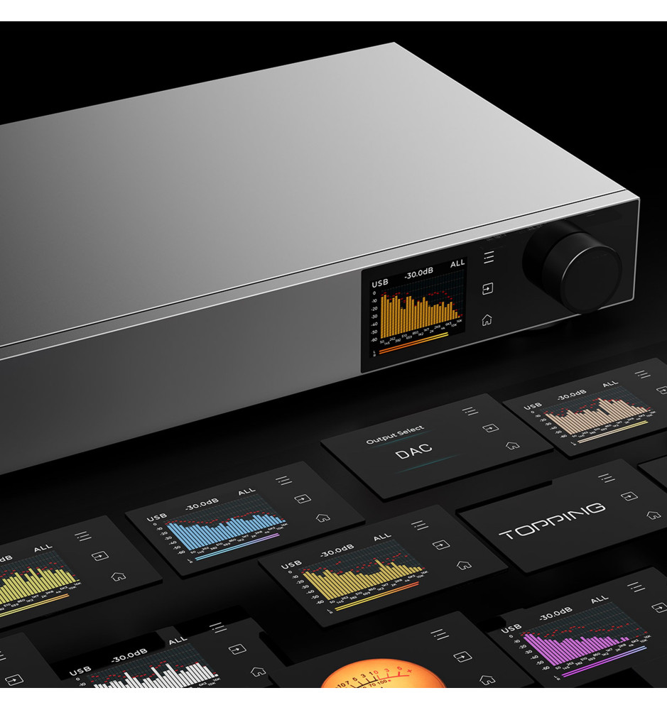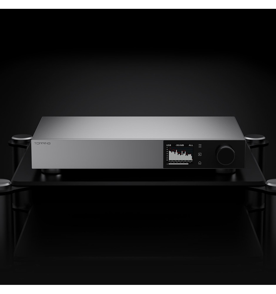 Flagowy przetwornik cyfrowo‑analogowy (DAC) od Topping, wyposażony w autorską dyskretną architekturę 1‑bit PSRM, zapewniającą wyjątkową czystość i dynamikę dźwięku, dzięki ultra‑niskim zniekształceniom oraz szerokiemu zakresowi dynamiki i sygnału do szumu.