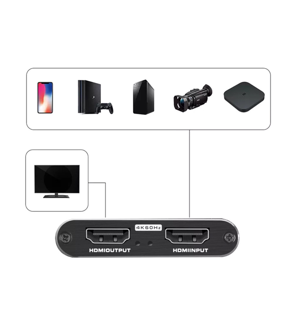 Złącza wejściowe i wyjściowe HDMI 2.0b z HDCP 2.2 pozwalają na obsługę rozdzielczości sygnału wejściowego oraz wyjściowego do 4K przy 60Hz. Urządzenie samo rozpoznaje jakość sygnału wejściowego i dopasowuje rozdzielczość oraz ilość klatek na sekundę sygnału wyjściowego, nie obciążając procesora i bez konieczności instalowania sterowników.