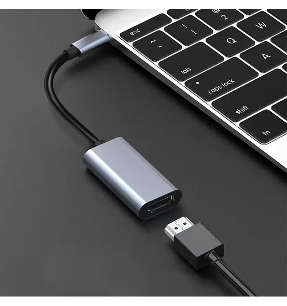 Wysokiej klasy przejściówka USB-C do HDMI umożliwiająca podłączenie za pomocą kabla HDMI nowoczesnego laptopa, smartfona lub tabletu do telewizora lub monitora.