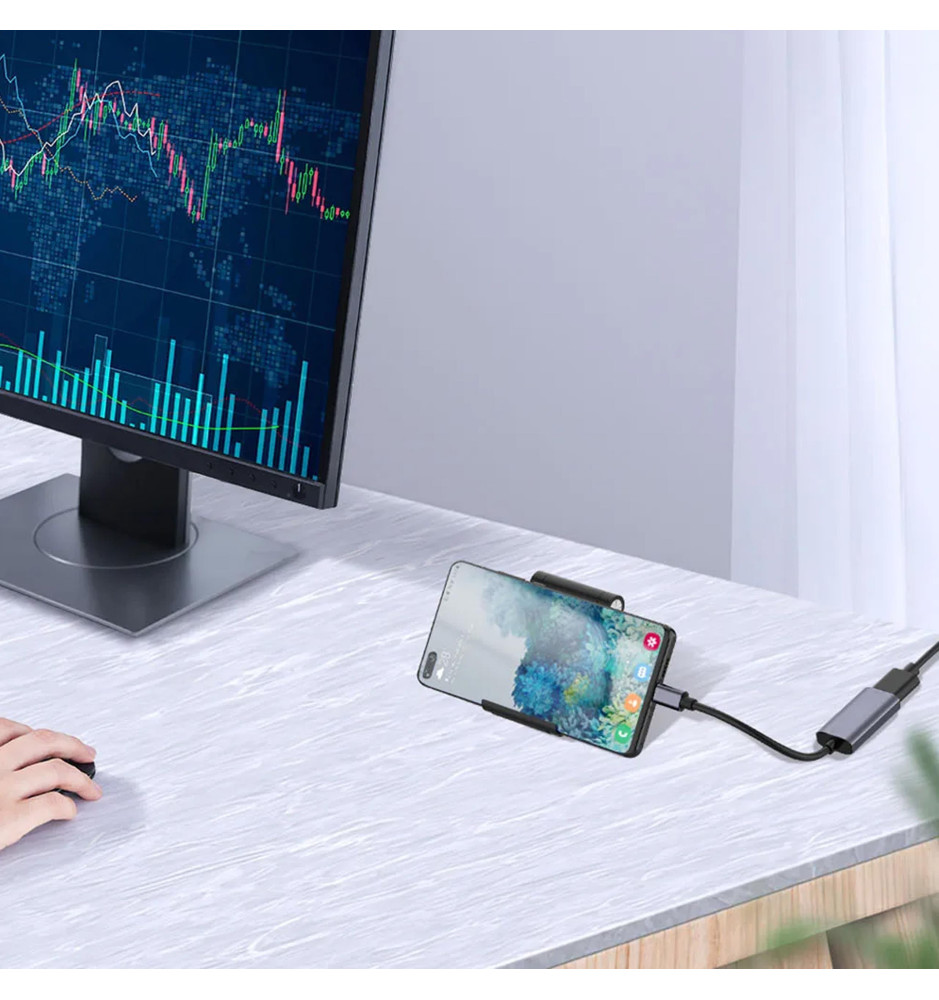 Adapter WireWay WW410214, dzięki nowoczesnemu złączu USB-C w standardzie 3.1 oraz pozłacanemu wejściu HDMI, zapewnia najwyższą jakość obrazu i dźwięku z obsługą rozdzielczości do 4K przy 30Hz. Obsługuje zarówno tryb dublowania, jak i rozszerzony, jeżeli urządzenie źródłowe wspiera te funkcje. Wyświetlany obraz jest zgodny 1:1 do obrazu na ekranie telefonu lub komputera i jest pozbawiony opóźnień.