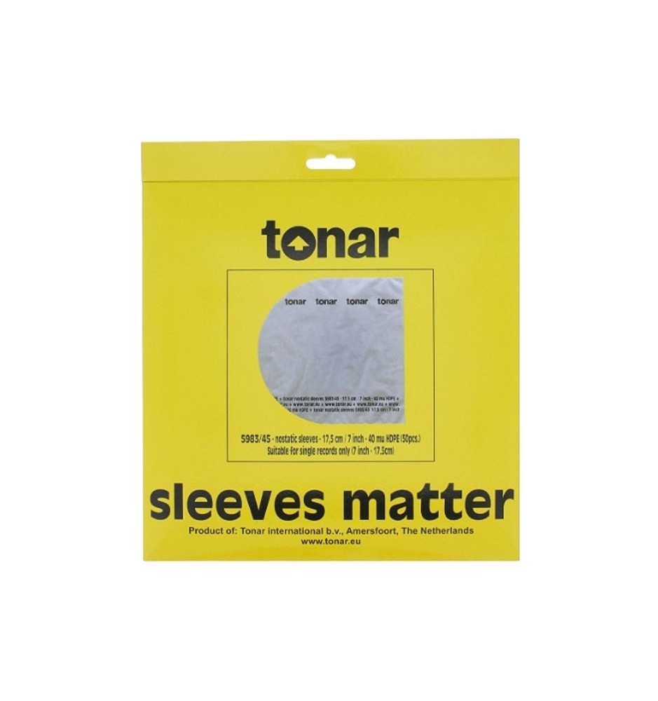Koszulki antystatyczne marki Tonar wykonane są z wysokiej jakości materiału o właściwościach antystatycznych. Idealnie pasują do płyt gramofonowych o rozmiarze 7" (17,5 cm).