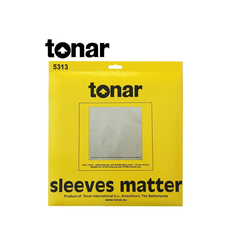 Okładki zewnętrzne marki Tonar wykonane są z wysokiej jakości materiału o właściwościach niepylących. Idealnie pasują do okładek płyt gramofonowych o rozmiarze 10" (25 cm).