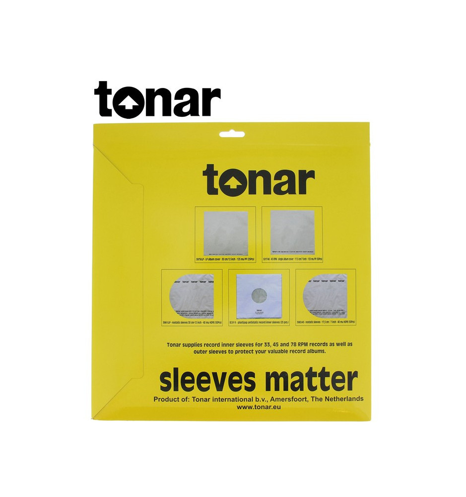 Okładki zewnętrzne marki Tonar wykonane są z wysokiej jakości materiału o właściwościach niepylących. Idealnie pasują do okładek płyt gramofonowych o rozmiarze 12" (30 cm).