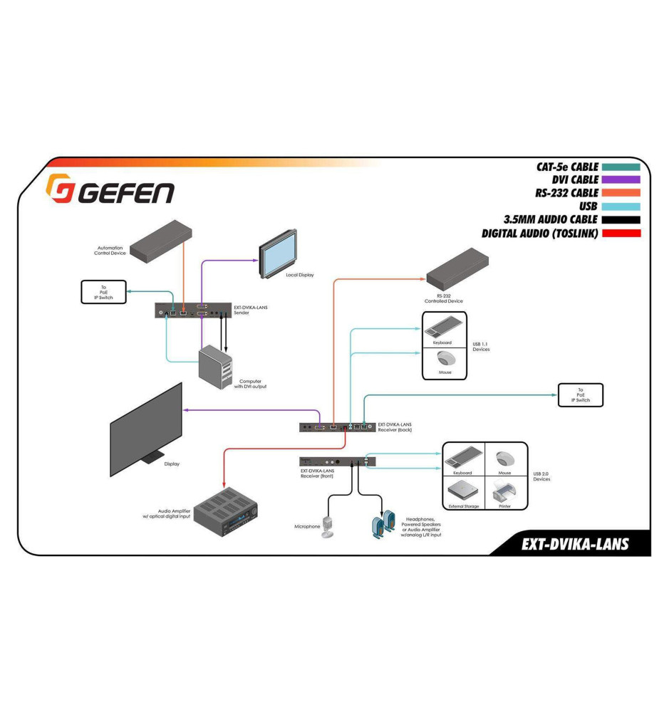 Gefen EXT-DVIKA-LANS-RX - Odbiornik do systemu dystrybucji DVI KVM przez IP