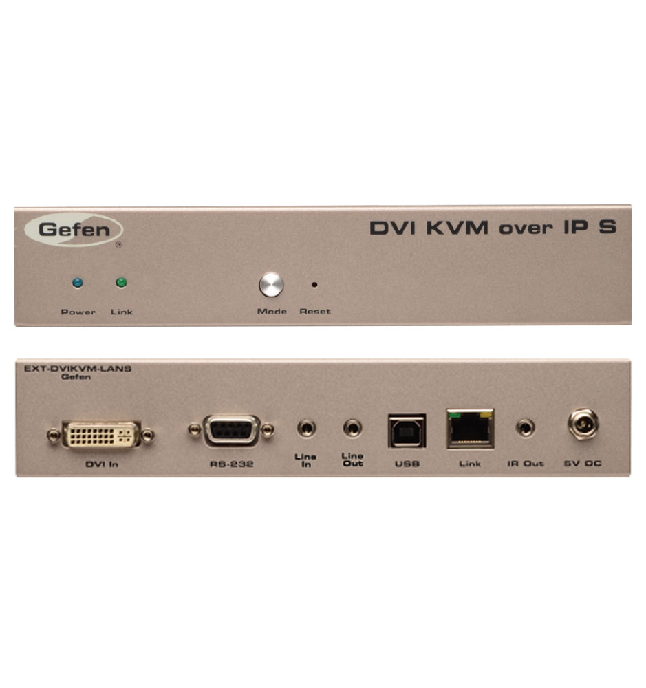 Gefen EXT-DVIKVM-LANTX to profesjonalny nadajnik KVM-over-IP (AV-over-IP), który umożliwia przesył sygnału DVI, USB, RS-232, IR oraz audio poprzez sieć Gigabit Ethernet.