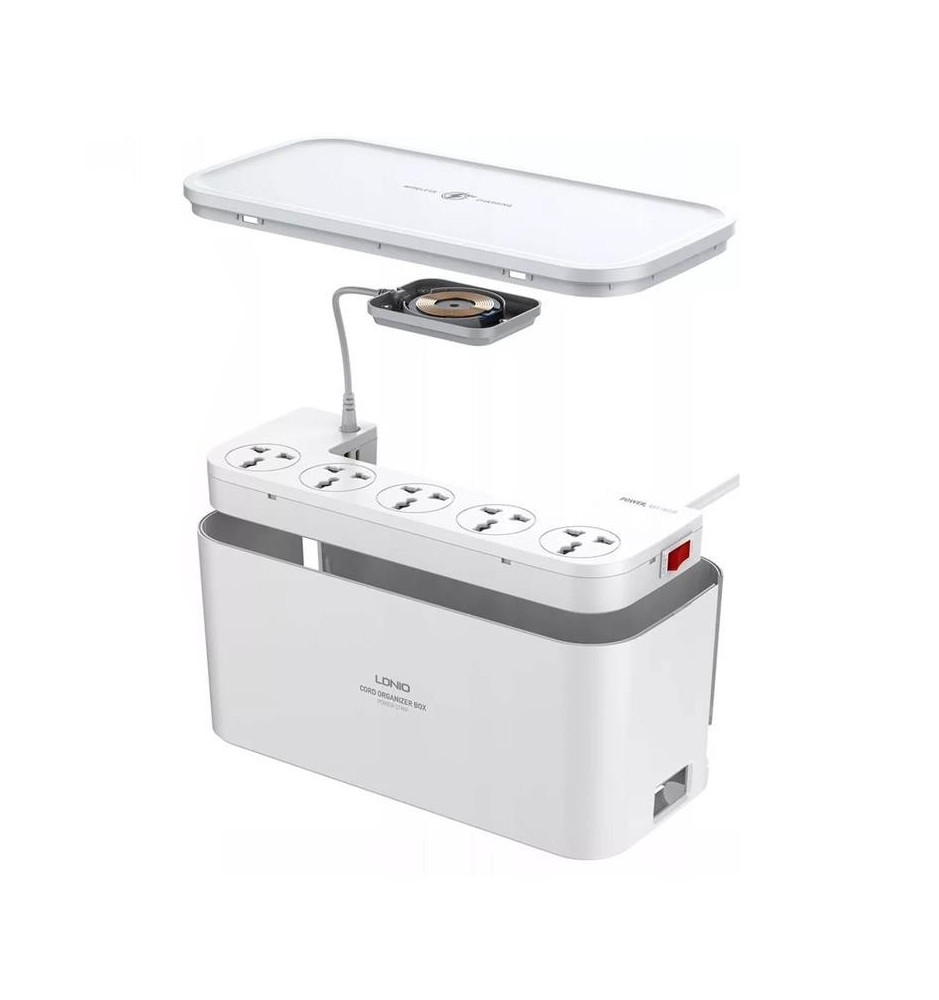 Ldnio SCW5354 - Organizer do kabli / zasilacz z USB / ładowarka indukcyjna