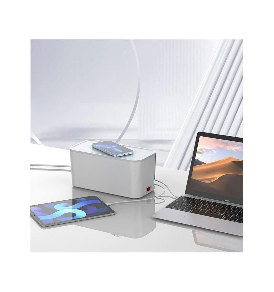 Uniwersalna listwa zasilająca będąca równocześnie organizerem do przewodów oraz bezprzewodową ładowarką. Pozwoli schludnie i sprawnie zarządzać przewodami przy urządzeniach, a 5 gniazd AC z 3 portami USB umożliwią podpięcie aż 8 różnych urządzeń jednocześnie.