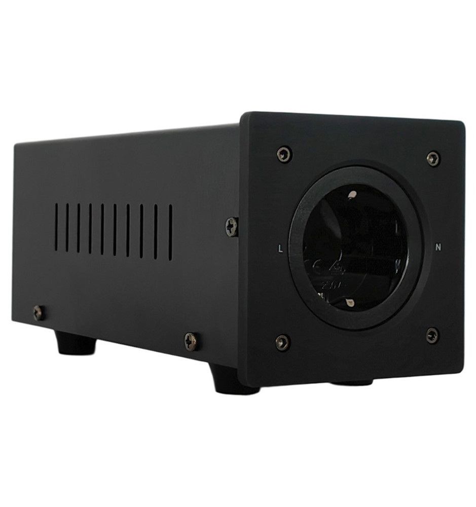 Profesjonalny filtr napięcia zasilającego z pojedynczym gniazdem typu Schuko, który ogranicza odpowiedzialną za szumy oraz zbyt wysoką temperaturę pracy transformatorów niepożądaną stałą składową w wyjściowych gniazdach zasilających.