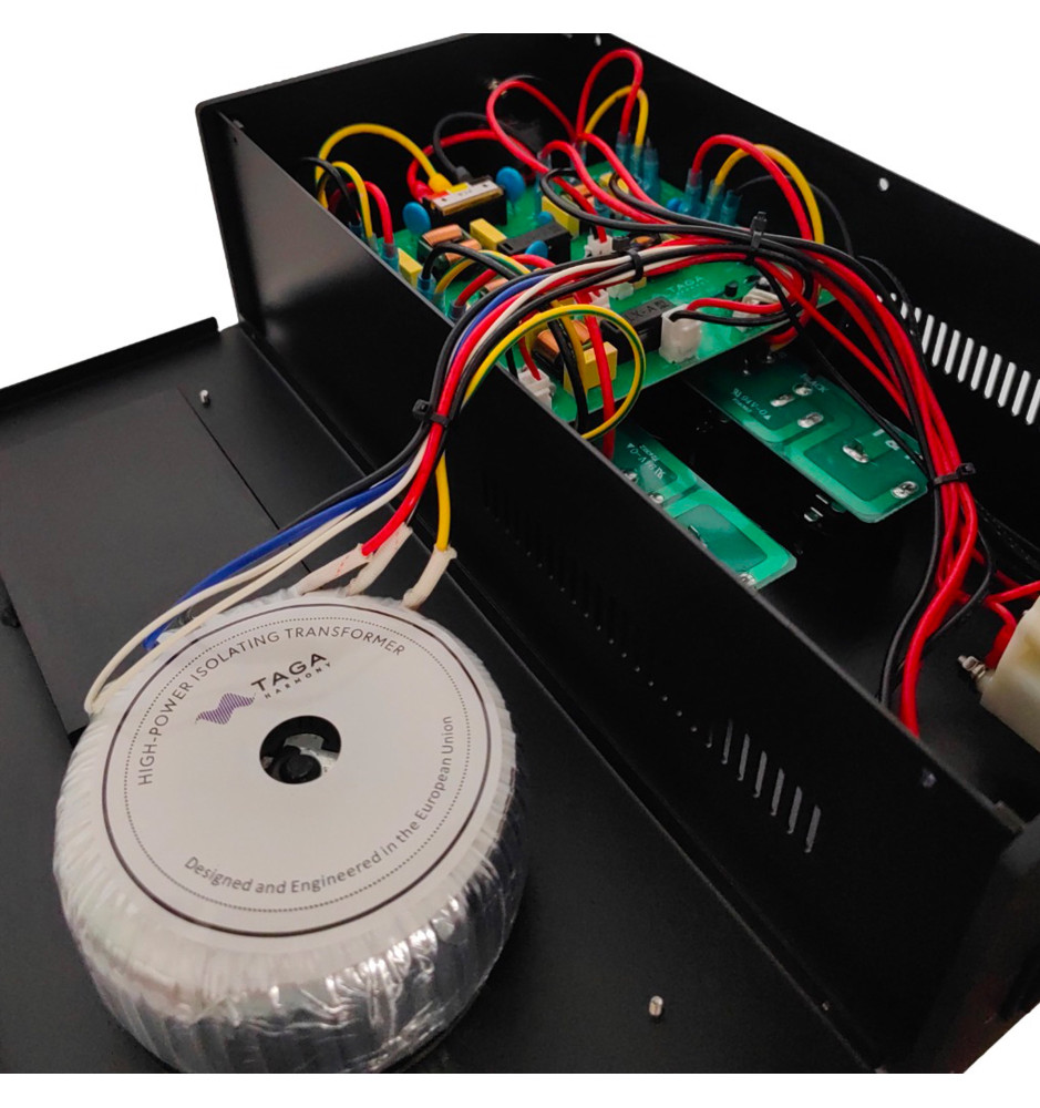 Zastosowanie wysokiej jakości kondensatorów klasy X wspomaga filtrowanie, a transformator toroidalny o dużej mocy 200W zapewnia skuteczną izolację od zakłóceń sieciowych dla urządzeń źródłowych. Ochronę transformatora przed zakłóceniami elektromagnetycznymi, a tym samym poprawę jego pracy i wydajności, gwarantuje osłona ekranująca z folii aluminiowej. Całość dopełnia wewnętrzne okablowanie z miedzi beztlenowej.