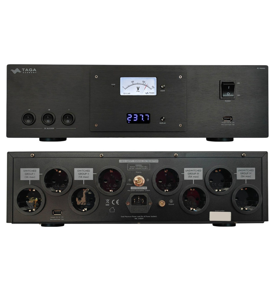 Taga Harmony PC-9000DC - Filtr zasilania / kondycjoner sieciowy z blokerem DC 8 gniazd Schuko + 2x USB