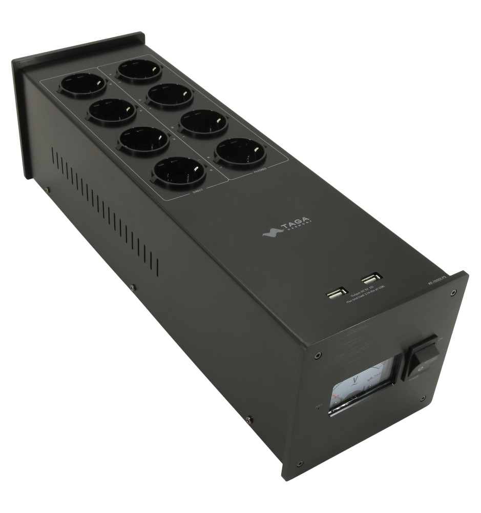 Taga Harmony PF-1000LPS - Filtr zasilania / listwa zasilająca 8 gniazd + 2 USB z zasilaczem liniowym