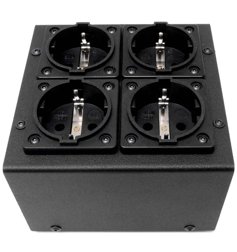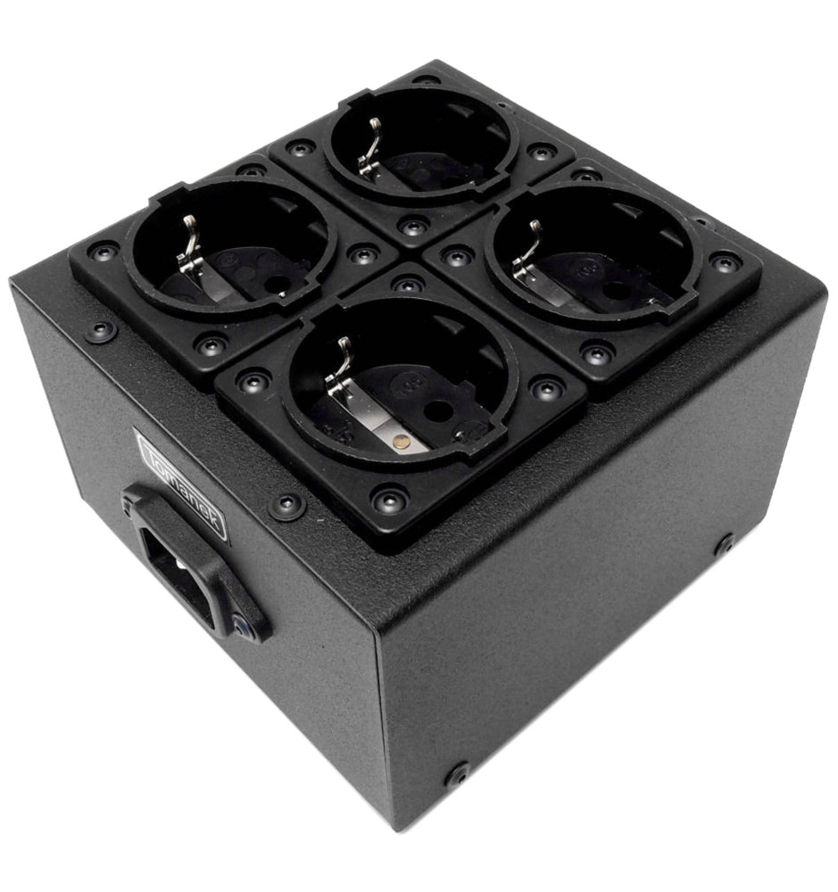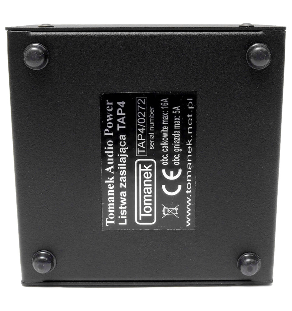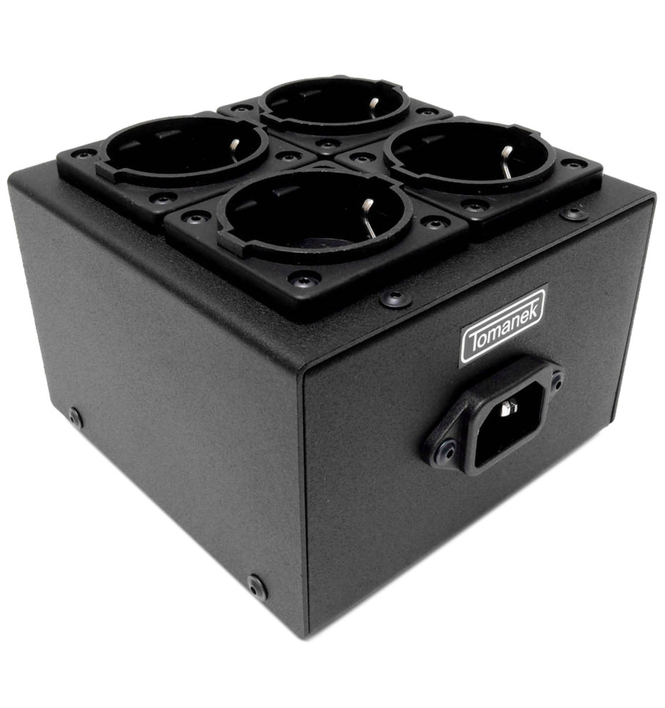 4-gniazdowa listwa zasilająca Tomanek TAP4 z filtrami Schaffnera przeznaczona do urządzeń audio, gwarantująca wysoką skuteczność tłumienia zakłóceń oraz sprawdzająca się przy dużym obciążeniu prądowym.