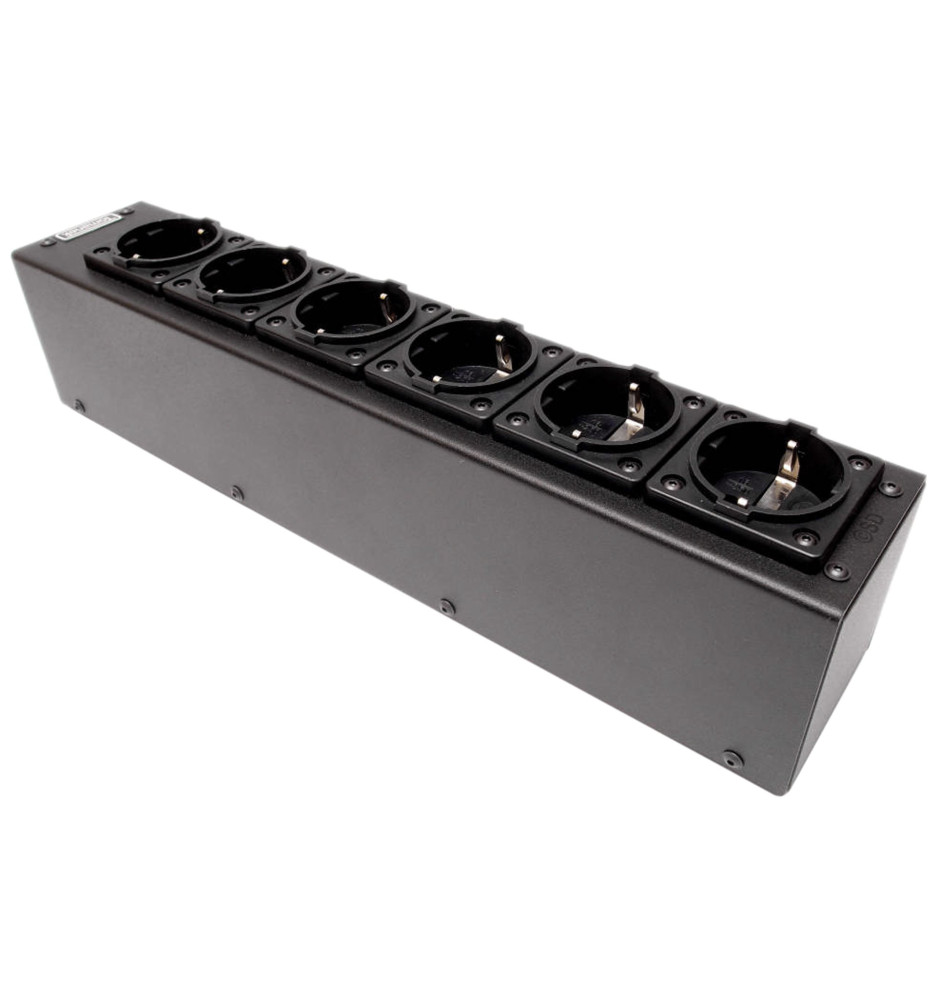 Audiofilska listwa zasilająca wyposażona w 5 gniazd z filtrami Schaffera oraz 1 gniazdo z blockerem DC, zapewniająca eliminację zakłóceń oraz zwiększająca wytrzymałość przy dużym obciążeniu prądowym.