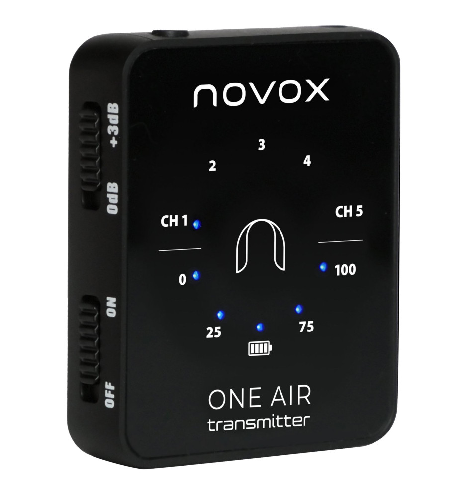 System Novox ONE AIR paruje się automatycznie, co zajmuje zaledwie 2 sekundy. Dźwięk jest przesyłany za pośrednictwem cyfrowej transmisji 2.4 GHz z 128-bitowym szyfrowaniem. Oferuje zasięg bezprzewodowy do 30 metrów w otwartym polu oraz jest zoptymalizowany do pracy w gęstych środowiskach radiowych i Wi-Fi.
