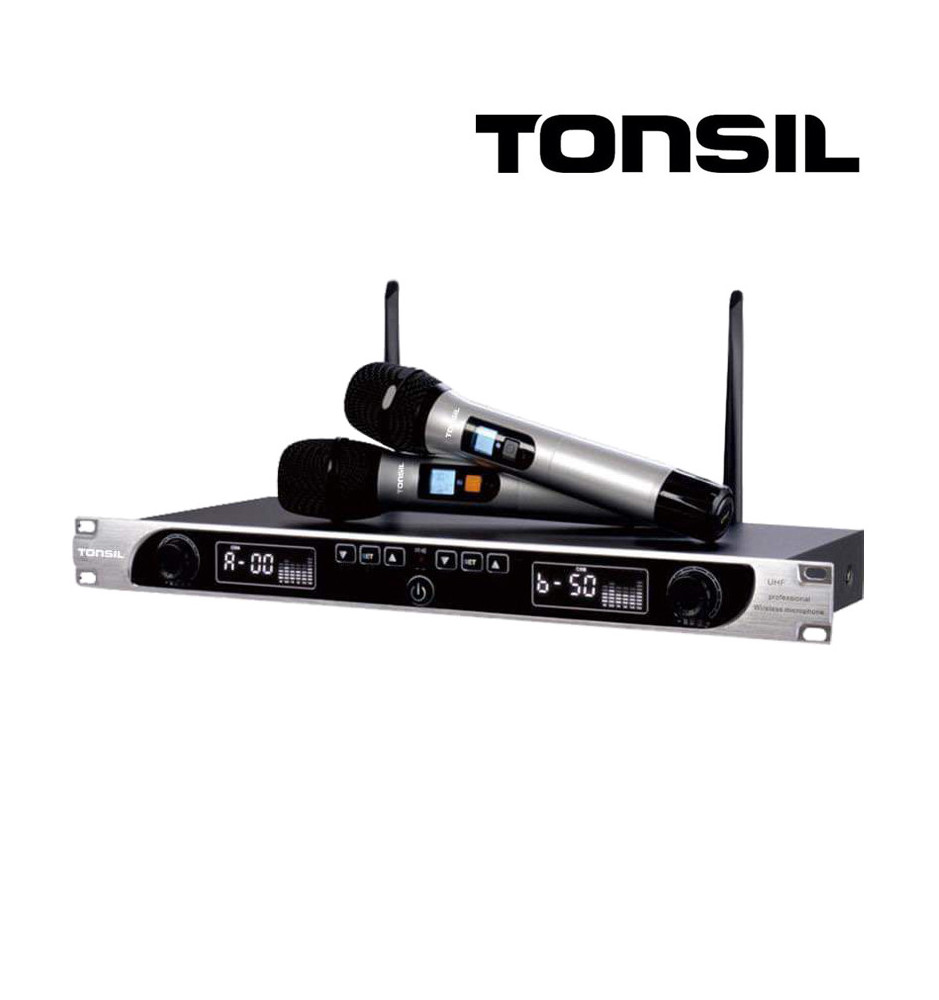 Zestaw bezprzewodowy Tonsil MBD 846 wyposażono w bazę/odbiornik komunikujący się z mikrofonami na częstotliwościach z zakresu 750 do 850 UHF. Całość oferuje imponujący w tej klasie zasięg do 100 metrów. Zarówno odbiornik jak i mikrofony posiadają praktyczne wyświetlacze. Na mikrofonach można sprawdzić stan baterii i status połączenia. Odbiornik pozwala na ustawienie poziomu głośności każdego z mikrofonów osobno oraz na parowanie ich według wybranej częstotliwości.