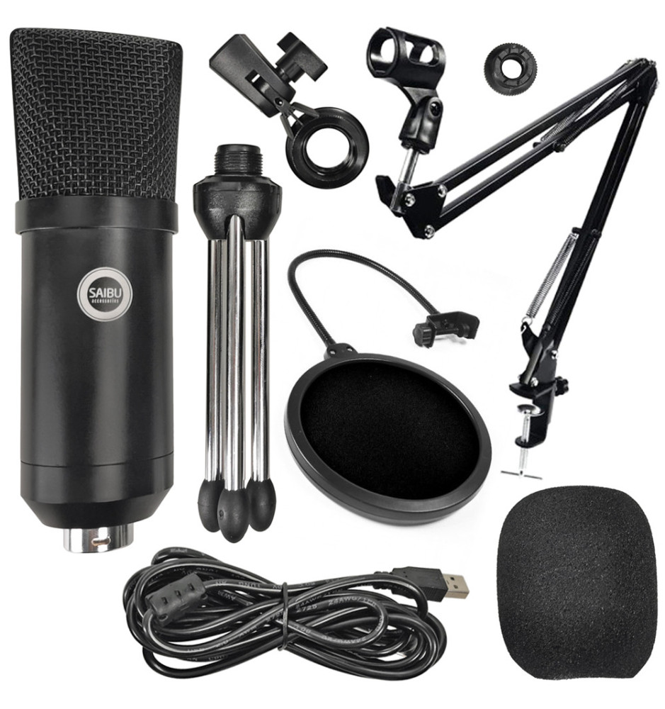 SAIBU MU-1 - Studyjny mikrofon pojemnościowy USB + Uchwyt/statyw biurkowy + POP Filtr