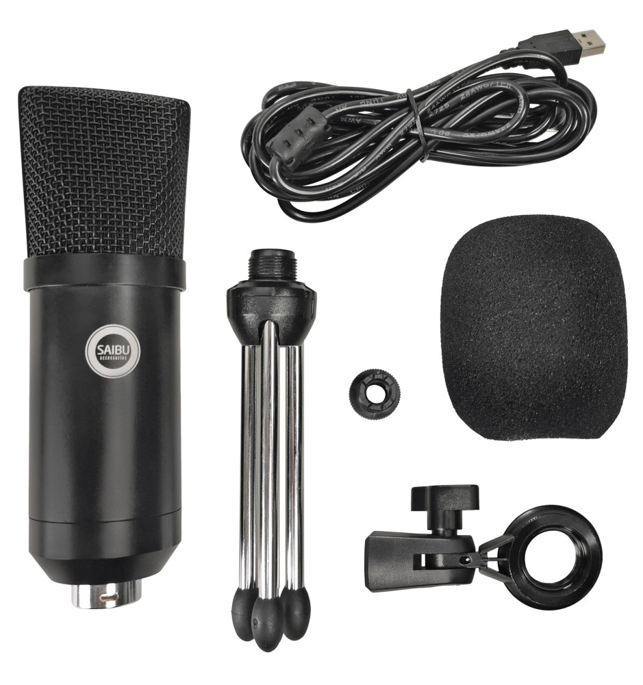 SAIBU MU-1 to wysokiej klasy mikrofon pojemnościowy doskonały do domowego oraz profesjonalnego studia nagrań. W zestawie uchwyt do statywu, statyw typu biurkowy tripod, osłona przeciwwietrzna i kabel USB 2,70m. Dzięki podłączeniu poprzez USB nie wymaga zasilania phantom 48V ani dodatkowego interfejsu.