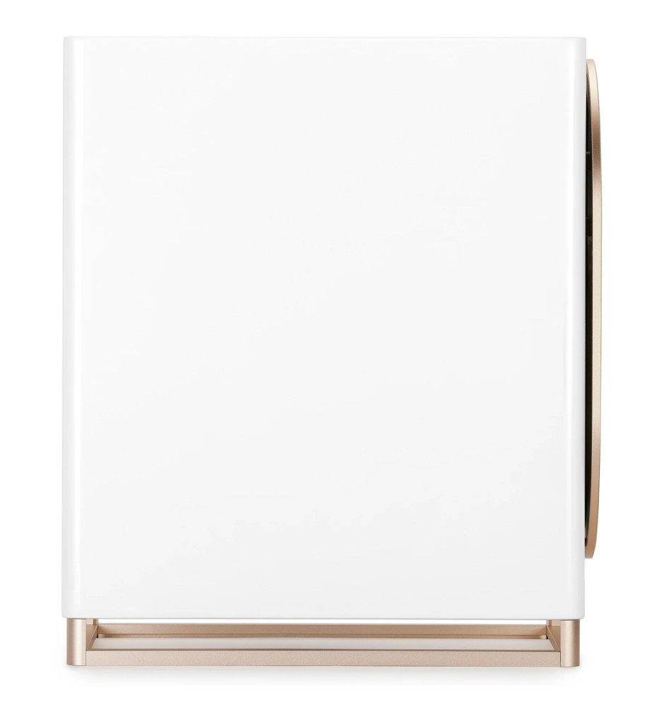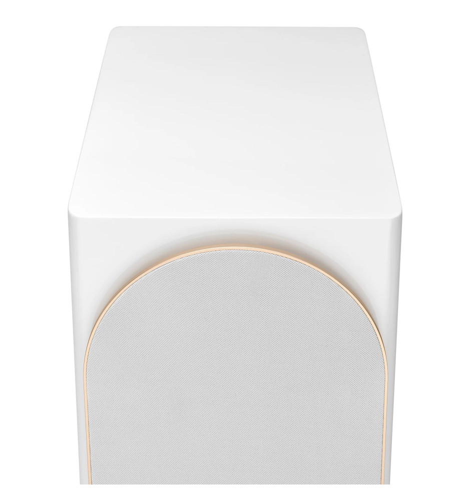 Staranne wykończenie głośników z zakrzywionymi krawędziami, detalami z anodyzowanego aluminium w kolorze szampana oraz naturalnym fornirem z orzecha włoskiego pokrytego błyszczącym lakierem, nadaje im prawdziwie luksusowy wygląd.