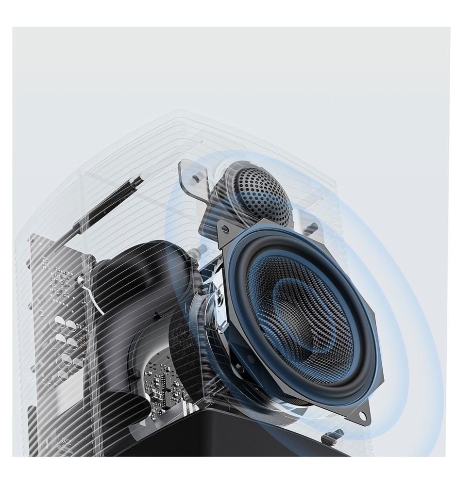 Monitory aktywne FiiO SP3 BT wykorzystują większe niż zazwyczaj spotykane w tej klasie, bo aż 3,5-calowe głośniki niskotonowe z włókna węglowego. Dzięki nim zapewniają lepszą dynamikę i bardziej wierną reprodukcję dźwięku. Włókno węglowe jest mocne, sztywne i lekkie, co zapewnia szybką reakcję i minimalizuje zniekształcenia nieliniowe.