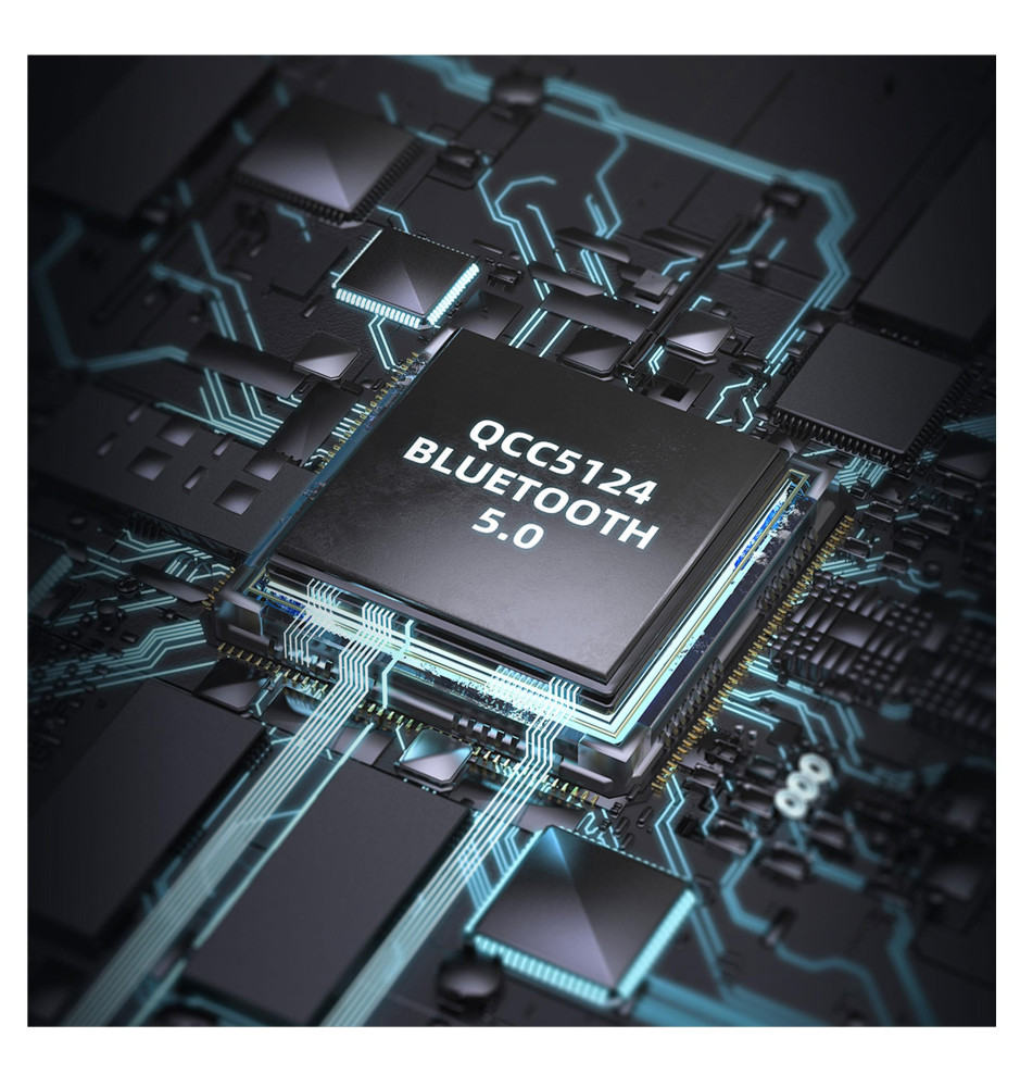 Zaawansowany technologicznie układ Bluetooth Qualcomm QCC5124 dzięki swojej architekturze z dwurdzeniowym procesorem CPU oraz podwójnym DSP dostarcza rewelacyjny dźwięk o wysokim bitrate i niezwykłej szczegółowości.
