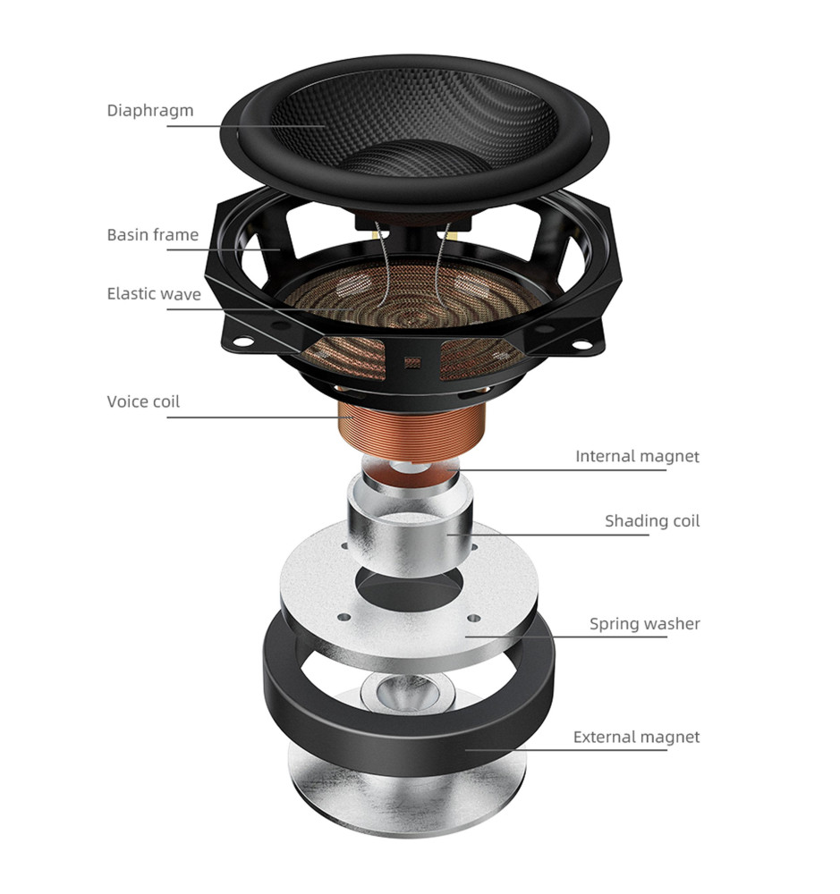 Inżynierowie FiiO stworzyli asymetryczny system obwodów magnetycznych dla 3,5-calowych głośników niskotonowych z włókna węglowego. Uzyskiwane dzięki temu silne pole magnetyczne o wartości 1,2 Tesli zapewnia dynamiczne brzmienie, mocne basy i redukuje zniekształcenia na wszystkich częstotliwościach.