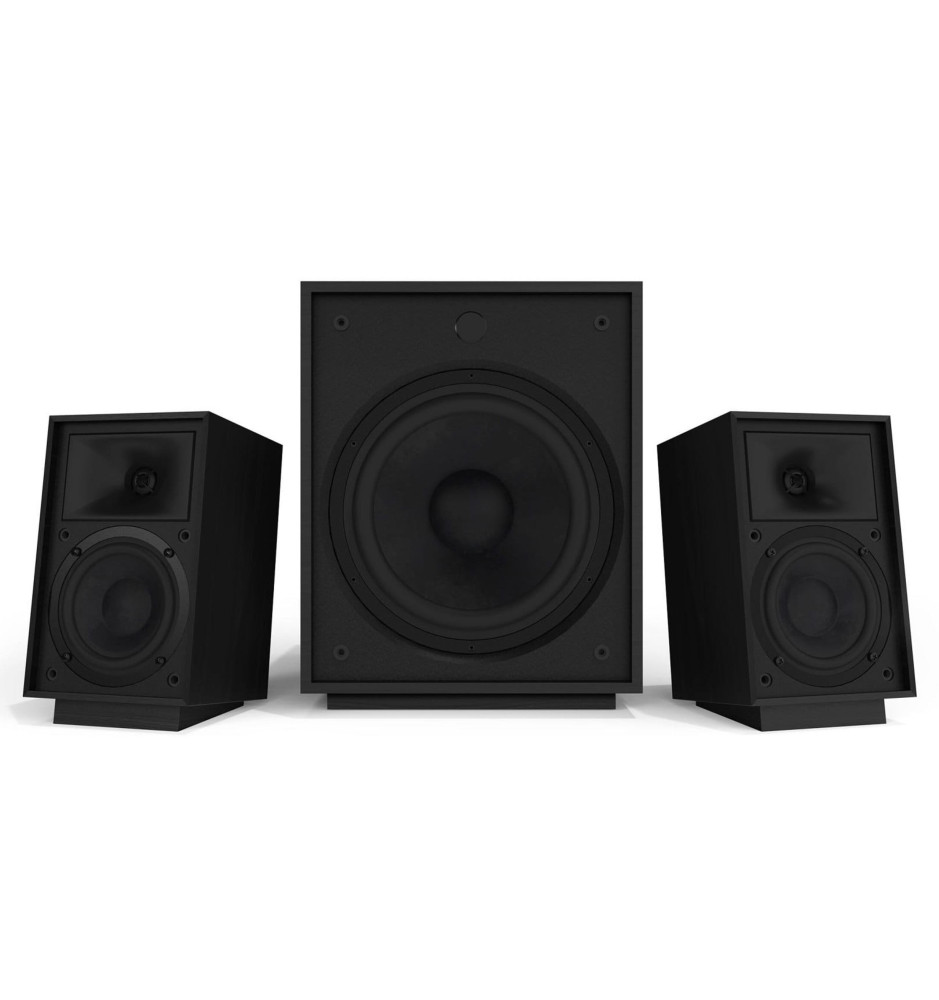 System ProMedia Heritage 2.1 swój czysty, precyzyjny i niezwykle wydajny dźwięk, charakterystyczny dla głośników Klipsch, zawdzięcza połączeniu 1-calowej miękkiej kopułki wysokotonowej z opatentowaną geometrią Tractrix® i 4-calowego głośnika o długim skoku membrany. Głębokie, muzykalne basy zapewnia 8-calowy, 100W subwoofer z tylnym portem basowym.