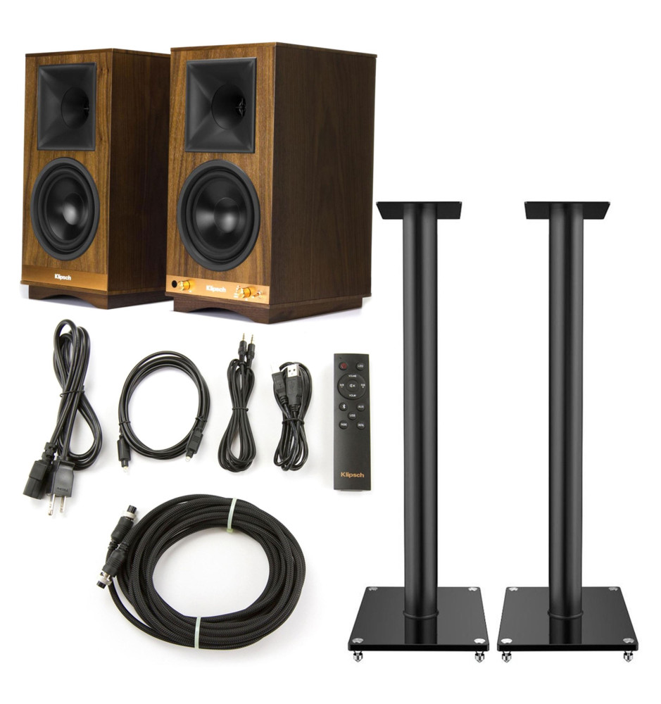 Zestaw kolumny podstawkowe Klipsch The Sixes Walnut + standy Taga Harmony TSS-96G