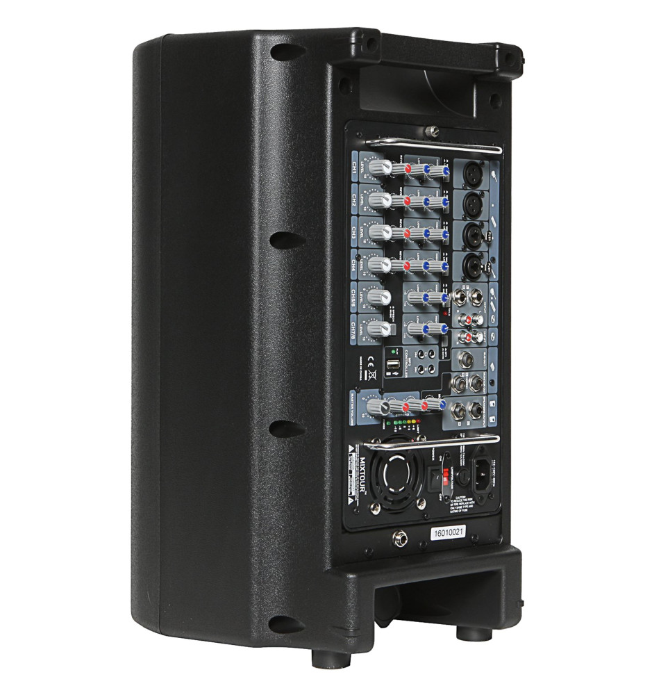 Zintegrowany powermikser pracujący w klasie D umożliwia uzyskanie 400W łącznej mocy zestawu. Dzięki MixTour z łatwością nagłośnisz wystąpienia, zespoły muzyczne oraz imprezy. 10-calowe przetworniki niskotonowe połączone z dodatkowymi tweeterami zapewniają doskonałą dynamikę i szerokie pasmo dźwięku.