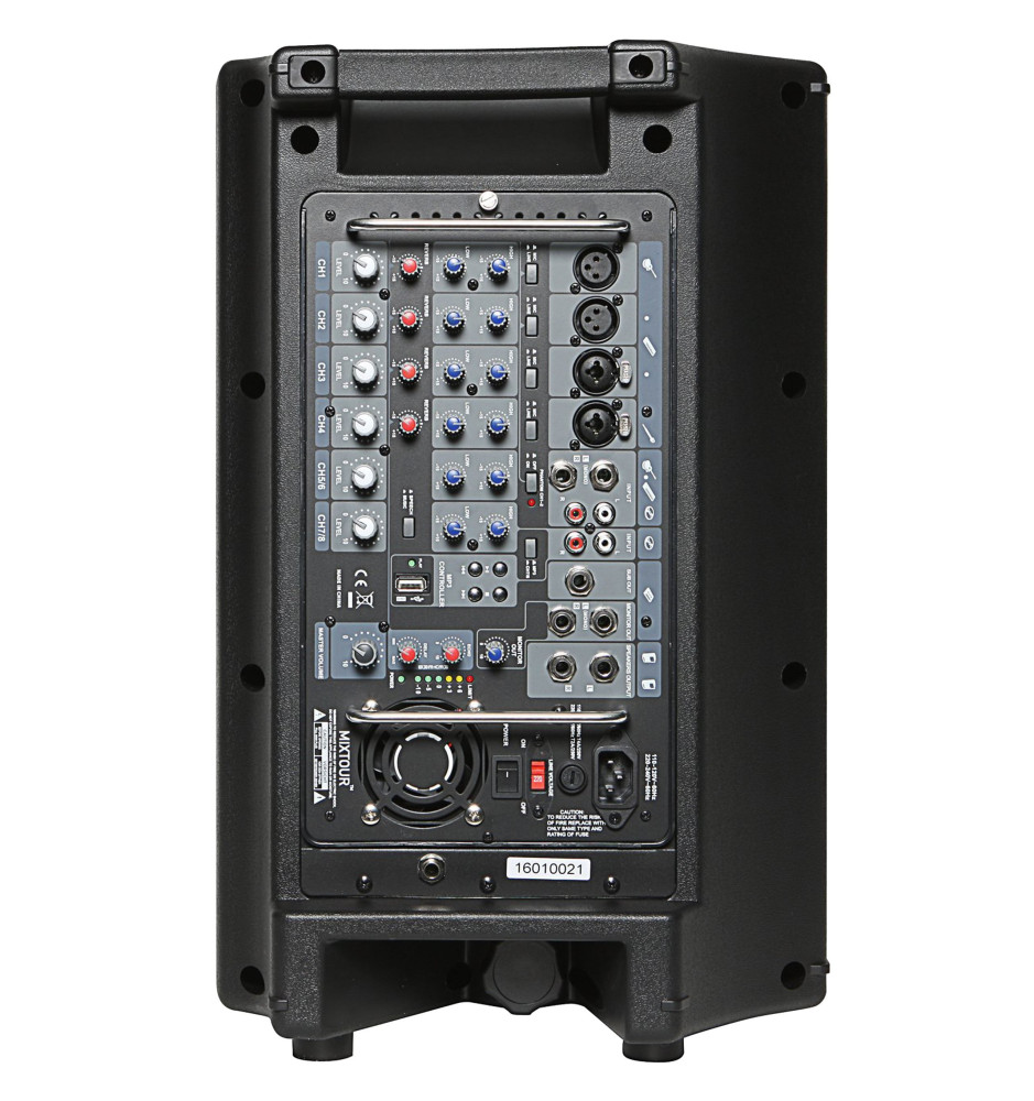 System MixTour to niezawodny wybór do użytku w każdych warunkach, dzięki układowi transformatora chronionemu bezpiecznikiem przeciwprzepięciowym, chromowanym ramkom zabezpieczającym potencjometry i przełączniki przed uszkodzeniami mechanicznymi oraz wbudowanemu wentylatorowi chłodzącemu elektronikę i zasilacz.