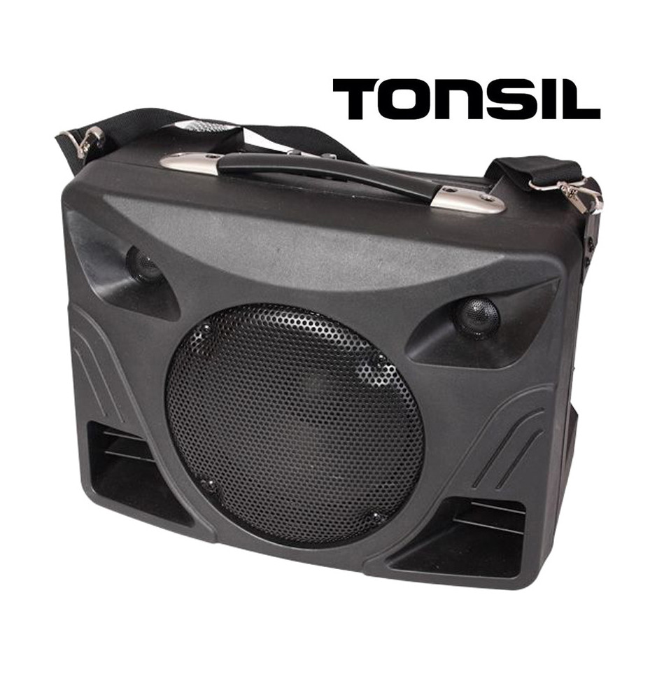 Mobilny system nagłośnieniowy Tonsil wyposażono w ogromny akumulator wielokrotnego użytku, umożliwiający bezprzewodową pracę urządzenia. W zestawie znajduje się również kabel zasilający DC do gniazda zapalniczki samochodowej. Zestaw nagłośnieniowy zawiera w sobie odtwarzacz MP3, który pozwala na odtwarzanie muzyki z USB oraz portu kart SD.